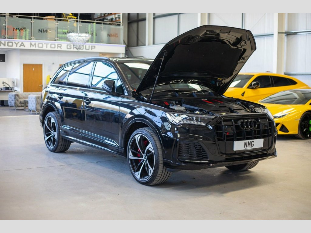 This 2022 Audi SQ7 TFSI V8 Vorsprung offers exceptional performance with remarkably low mileage for its age, having covered just 26,592 miles. As a Euro 6 compliant model, this seven seat SUV is powered by a potent 4.0 litre petrol engine, delivering exhilarating acceleration from 0-60mph in a mere 4.1 seconds. Its sophisticated Four Wheel Drive system ensures confident handling in all conditions, and with a substantial towing weight of 3500 kg, it is perfectly equipped for any adventure. The Vorsprung trim level enhances the driving experience with a host of premium features. Navigate tight spaces with ease thanks to the 360 degree camera system and Trailer Assist, which works seamlessly with the included towbar. Enjoy crystal clear illumination from the LED headlights, and stay connected and entertained with the Audi Smartphone Interface, offering both Android Auto and Apple CarPlay. For ultimate comfort, the Deluxe Four Zone Automatic Climate Control allows personalised temperature settings for all occupants, complemented by the premium sound system found within the Comfort and Sound Package. These highlights demonstrate how this SQ7 provides a superior and more refined driving experience compared to other vehicles in its class. Valcona Leather - S Super Sport Seats - , Red Painted Brake Calipers with S Logo, Trailer Assist, Mythos Black, 2 USB-C Ports with Charging Functionalit, 22in Alloy Wheels - 10.0J 5-V-Spoke - St, 7 Seats, AMI - Audi Music Interface, Airbags - Driver - Front Passenger - Fro, All-Wheel Steering, Anti-Theft Alarm, Anti-Theft Wheel Bolts and Wheel Looseni, Audi Beam, Audi Connect - 3 Year Subscription, Audi Connect Safety and Service - e-call, Audi Connect with Amazon Alexa Integrati, Audi Drive Select, Audi Hill Hold Assist, Audi Music Interface in the Rear, Audi Parking System Plus, Audi Pre-Sense Front, Audi Smartphone Interface, Audi Virtual Cockpit, Auto Dimming and Frameless Rear View Mir,