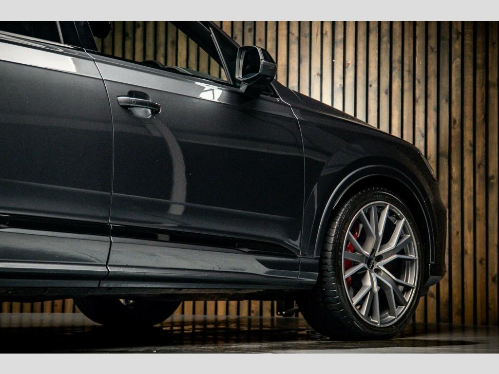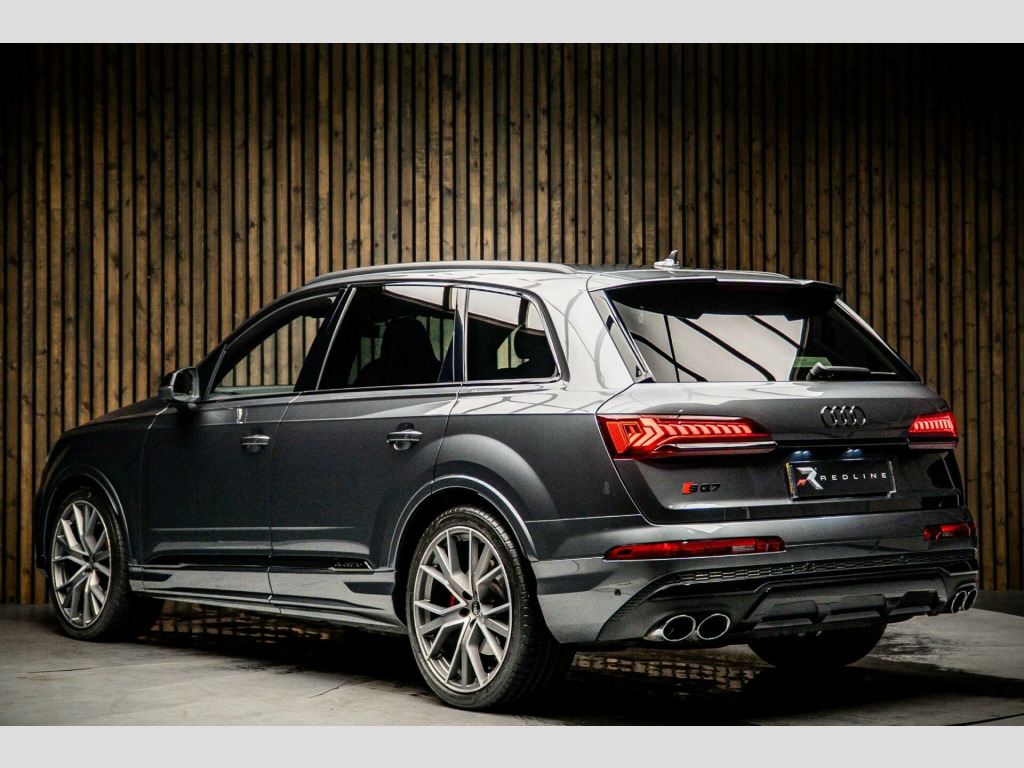 This 2022 Audi SQ7 TFSI V8 Vorsprung is a superb example, having had only one owner since new. This impressive seven seat SUV boasts a powerful 4.0 litre petrol engine and a sophisticated four wheel drive system, ensuring excellent performance and control in all conditions. As a Euro 6 compliant vehicle, it meets stringent emission standards. The Vorsprung trim level signifies the pinnacle of Audi's offering, providing a wealth of premium features designed for comfort and convenience.Experience exhilarating acceleration with the SQ7 capable of reaching 0-62mph in a remarkable 4.1 seconds, a testament to its V8 engine. This vehicle also offers a substantial towing weight of 3500 kg, making it highly versatile. Inside, you'll find heated front and outer rear seats for the second row, a heated leather multi-function sports steering wheel with shift paddles, and a Head Up Display for effortless information access. The Audi Smartphone Interface seamlessly integrates your phone with Android Auto and Apple CarPlay, while the Audi Parking System Plus with front and rear sensors aids manoeuvrability. Furthermore, the generous boot space ensures practicality for all your needs.. 2 USB-C Ports with Charging Functionality in the Rear, 22in Alloy Wheels - 10.0J 5-V-Spoke - Star Design - Aluminium in Matt Titanium with Gloss Turned Finish - Audi Sport, 7 Seats, AMI - Audi Music Interface, Airbags - Driver - Front Passenger - Front Side - Curtain, All-Wheel Steering, Anti-Theft Alarm, Anti-Theft Wheel Bolts and Wheel Loosening Warning, Audi Beam, Audi Connect (3 Year Subscription From New), Audi Connect Safety and Service - e-call, Audi Connect with Amazon Alexa Integration, Audi Drive Select, Audi Hill Hold Assist, Audi Music Interface in the Rear, Audi Parking System Plus, Audi Pre-Sense Front, Audi Smartphone Interface, Audi Virtual Cockpit, Auto Dimming and Frameless Rear View Mirror, Black Roof Rails, Bluetooth Interface, Camera-Based Traffic Sign Recognition, City Assist Pack, Comfort Front Centre Armrest, Comfort and Sound Package, DAB Digital Radio, Deluxe Four-Zone Automatic Climate Control, Door Mirrors - Heated - Electrically Adjustable - Folding and Auto Dimming with Memory Function, ESC - Electronic Stabilisation Control inc ABS - ASR and EDL, Electric Windows - Front and Rear, Electromechanical Parking Brake, Electromechanical Power Steering, Extended Pedestrian Protection Measures, First Aid Kit and Warning Triangle, Front and Rear Floor Mats, Fuel Tank 85L, Gloss Black Finish for the Exterior Audi Rings and SQ7 Logos, Head-Up Display, Headlight Washers, Heated Front and Outer Rear Seats for The Second Row, High Beam Assist, Illuminated Door Sill Trims with S Logo, Inlays - Polished Oak with Grey Finish, Keyless Go with Remote Central Locking, LED Daytime Running Lights, LED Headlights, LED Rear Lights, Luggage Compartment Sill Protection in Stainless Steel, MMI Navigation Plus with MMI Touch, Natural Voice Recognition, Panoramic Glass Sunroof, Pedals in Stainless Steel, Power Door Closure, Power Operated Tailgate, Privacy Glass, S Front and Rear Bumpers, S Line Roof Spoiler, S Specific Adaptive Air Sport Suspension, S Specific Rear Bumper with 4 Exhaust Pipes, Seat Belt Monitoring, Seat Ventilation and Massage Function for Front Seats, Steering Wheel - 3-Spoke Leather-Multi-Function-Heated-Sports-Shift Paddles, Titanium Black Door Mirrors, Titanium Black Styling Pack, Tool Kit, Tour Pack, Tyre Pressure Loss Indicator, Tyre Repair Kit, Windshield with Heat Insulated Glass, Red Painted Brake Calipers with S Logo, Daytona Grey, Audi Warranty - Covering you for up to 4 Years or 75000 Miles.