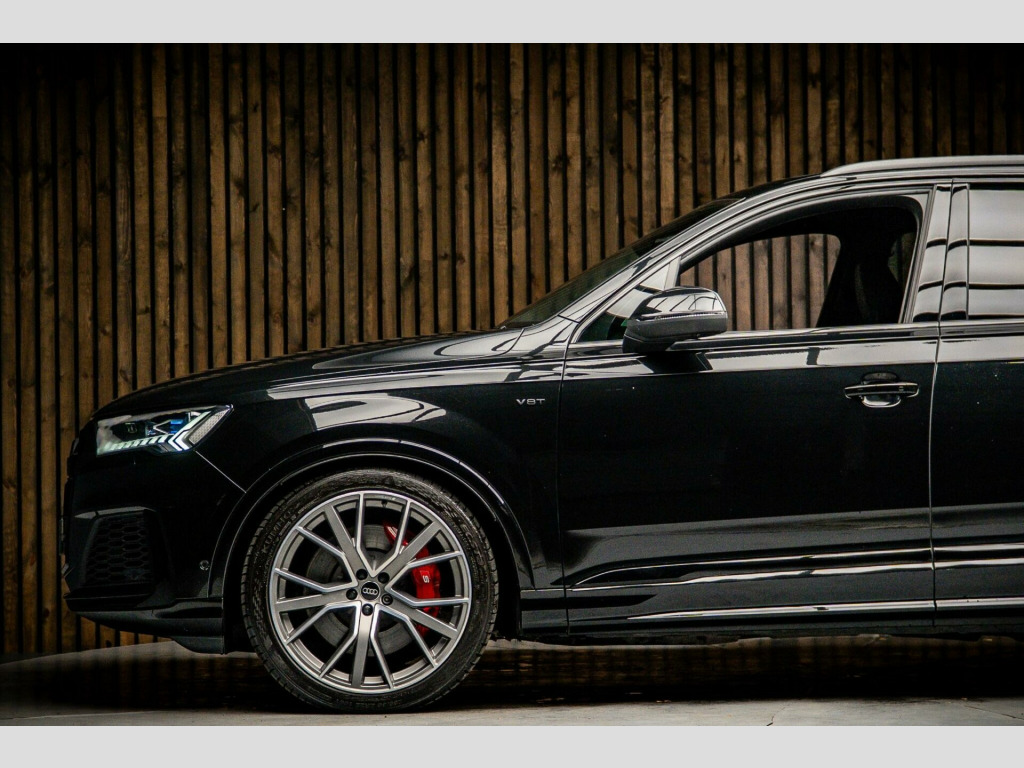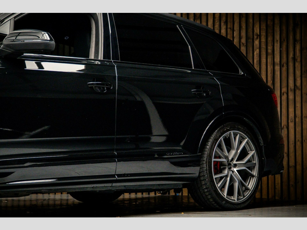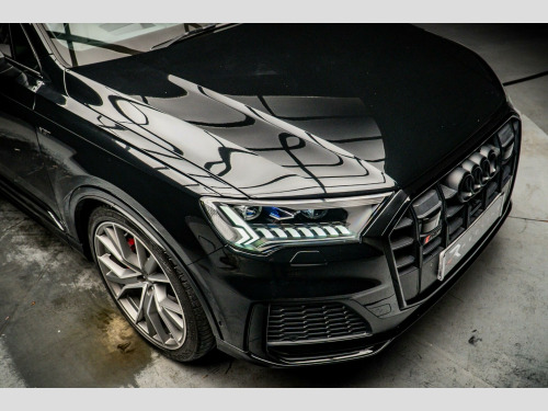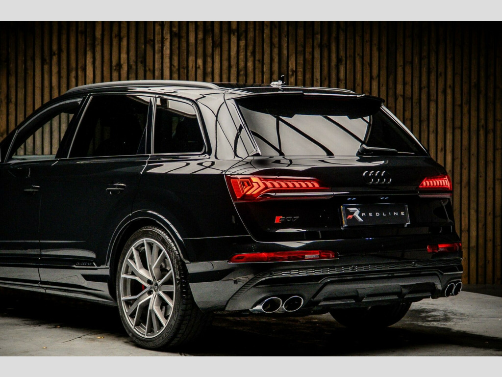This 2022 Audi SQ7 TFSI V8 Vorsprung offers exceptional value with its remarkably low mileage of just 18,750 miles. As a Euro 6 compliant model, this four wheel drive SUV is equipped with a powerful 4.0 litre petrol engine, delivering exhilarating performance. The Vorsprung trim ensures a premium experience, featuring a spacious interior with seven seats and ample boot space. Notable features include the convenience of the Audi Phone Box with wireless charging and Bluetooth connectivity, a sophisticated Head Up Display to keep your eyes on the road, and advanced Audi HD Matrix LED headlights with Audi Laser Light and dynamic indicators for superior visibility.Experience the thrill of rapid acceleration, reaching 0-62mph in a mere 4.1 seconds, a testament to the SQ7's potent V8 engine. This performance, combined with its impressive 3500 kg towing weight, makes it a highly capable vehicle for both everyday journeys and more demanding tasks. The Deluxe Four Zone Automatic Climate Control ensures comfort for all occupants, while the heated, leather multi-function sports steering wheel with shift paddles adds a touch of luxury and control. These carefully selected features highlight how this Audi SQ7 surpasses expectations, offering a refined and dynamic driving experience that sets it apart from other vehicles in its class.. 22in Alloy Wheels - 10.0J 5-V-Spoke - Star Design - Aluminium in Matt Titanium with Gloss Turned Finish - Audi Sport, 7 Seats, AMI - Audi Music Interface, Airbags - Driver - Front Passenger - Front Side - Curtain, All-Wheel Steering, Anti-Theft Alarm, Anti-Theft Wheel Bolts and Wheel Loosening Warning, Audi Beam, Audi Connect (3 Year Subscription From New), Audi Connect Safety and Service - e-call, Audi Drive Select, Audi HD Matrix LED Headlights with Audi Laser Light and Dynamic Front and Rear Indicators, Audi Hill Hold Assist, Audi Music Interface in the Rear, Audi Parking System Plus, Audi Phone Box with Wireless Charging, Audi Pre-Sense Front, Audi Smartphone Interface, Audi Virtual Cockpit, Auto Dimming and Frameless Rear View Mirror, Black Roof Rails, Camera-Based Traffic Sign Recognition, City Assist Pack, Comfort Front Centre Armrest, Comfort and Sound Package, DAB Digital Radio, Deluxe Four-Zone Automatic Climate Control, Door Mirrors - Heated - Electrically Adjustable - Folding and Auto Dimming with Memory Function, ESC - Electronic Stabilisation Control inc ABS - ASR and EDL, Electric Windows - Front and Rear, Electrically Adjustable Steering Column, Electromechanical Parking Brake, Electromechanical Power Steering, Extended Pedestrian Protection Measures, First Aid Kit and Warning Triangle, Front and Rear Floor Mats, Fuel Tank 85L, Head-Up Display, Headlight Washers, Heated Front and Outer Rear Seats for The Second Row, Illuminated Door Sill Trims with S Logo, Inlays - Polished Oak with Grey Finish, Keyless Go with Remote Central Locking, LED Daytime Running Lights, LED Rear Lights, Luggage Compartment Sill Protection in Stainless Steel, MMI Navigation Plus with MMI Touch, Natural Voice Recognition, Panoramic Glass Sunroof, Pedals in Stainless Steel, Power Door Closure, Power Operated Tailgate, Privacy Glass, S Front and Rear Bumpers, S Line Roof Spoiler, S Specific Adaptive Air Sport Suspension, S Specific Rear Bumper with 4 Exhaust Pipes, Seat Belt Monitoring, Seat Ventilation and Massage Function for Front Seats, Steering Wheel - 3-Spoke Leather-Multi-Function-Heated-Sports-Shift Paddles, Titanium Black Door Mirrors, Titanium Black Styling Pack, Tool Kit, Tour Pack, Tyre Pressure Loss Indicator, Tyre Repair Kit, Windshield with Heat Insulated Glass, Red Painted Brake Calipers with S Logo, Rear Entertainment.