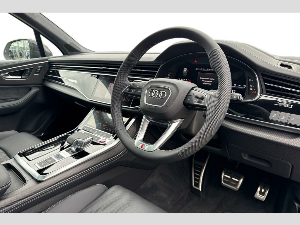 2 USB-C Ports with Charging Functionality in the Rear, 22in Alloy Wheels - 10.0J Muliti-Spoke S Design - Black Metallic - Gloss Turned Finish, 360 Degree Camera, 4-Way Lumbar Support for Front Seats, 7 Seats, Adaptive Windscreen Wipers with Integrated Washer Jets, Airbags - Driver - Front Passenger - Front Side - Curtain, All-Wheel Steering, Anti-Theft Alarm with Tow-Away Protection, Anti-Theft Wheel Bolts and Wheel Loosening Warning, Audi Beam, Audi Connect - 3 Year Subscription, Audi Connect Safety and Service - e-call, Audi Connect with Amazon Alexa Integration, Audi Drive Select, Audi Music Interface in the Rear, Audi Phone Box Light with Wireless Charging, Audi Pre-Sense Front, Audi Smartphone Interface, Audi Virtual Cockpit Plus, Auto Dimming and Frameless Rear View Mirror, Bang and Olufsen Sound System, Black Dinamica Headlining, Black Roof Rails, Black Styling Package Plus, Camera-Based Traffic Sign Recognition, Carbon Door Mirrors, City Assist Pack, Comfort Front Centre Armrest, DAB Digital Radio, Deluxe Four-Zone Automatic Climate Control, Door Mirrors - Heated - Electrically Adjustable - Folding and Auto Dimming with Memory Function, Double Sun Visor, Driver and Front Passenger Memory Function for the Electrically Adjustable Front Seats, ESC - Electronic Stabilisation Control inc ABS - ASR and EDL, Electric Steering Wheel Adjustment, Electric Windows - Front and Rear, Electromechanical Active Roll Stabilisation, Electromechanical Parking Brake, Electromechanical Power Steering, Extended Leather Pack, Extended Pedestrian Protection Measures, First Aid Kit and Warning Triangle, Front and Rear Floor Mats, Fuel Tank 85L, HD Matrix LED Headlights with Audi Laser Light, Head-Up Display, Headlight Washers, Heated Front and Outer Rear Seats for The Second Row, Hold Assist, ISOFIX Child Seat Mounting for Front Passenger, Illuminated Door Sill Trims with S Logo, Inlays - Carbon Vector, Keyless Go with Remote Central Locking, LED Daytime Running Lights, LED Rear Lights Plus, Lane Departure Warning, Loading Edge Protection in Stainless Steel, Luggage Compartment Cover, Luggage Compartment Sill Protection in Stainless Steel, MMI Navigation Plus with MMI Touch, Manual Sunblinds for the Rear Side Windows and Manual Sunblinds for the Rear Window, Multi-Coloured Extended LED Interior Light Pack, Natural Voice Recognition, Operating Buttons in Matte Black, Park Assist with Parking Aid Plus, Parking Assist with Parking System Plus, Pedals in Stainless Steel, Power Door Closure, Power Operated Tailgate, Privacy Glass, S Line Badges on the Front Wings, S Line Bumpers in Full Body-Colour Paint Finish, S Line Roof Spoiler, S Line Styling Side Ventilation Grille and Side Skirts, S Specific Adaptive Air Sport Suspension, S Technology Pack Pro, Seat Belt Monitoring, Seat Ventilation and Massage Function for Front Seats, Steering Wheel - 3-spoke Heated Leather Multi-function with Shift Paddles, Tool Kit, Tour Pack, Tyre Pressure Loss Indicator, Tyre Repair Kit, Upper Interior Element with Contrast Stitching, Windshield with Heat Insulated Glass, quattro Sport Differential