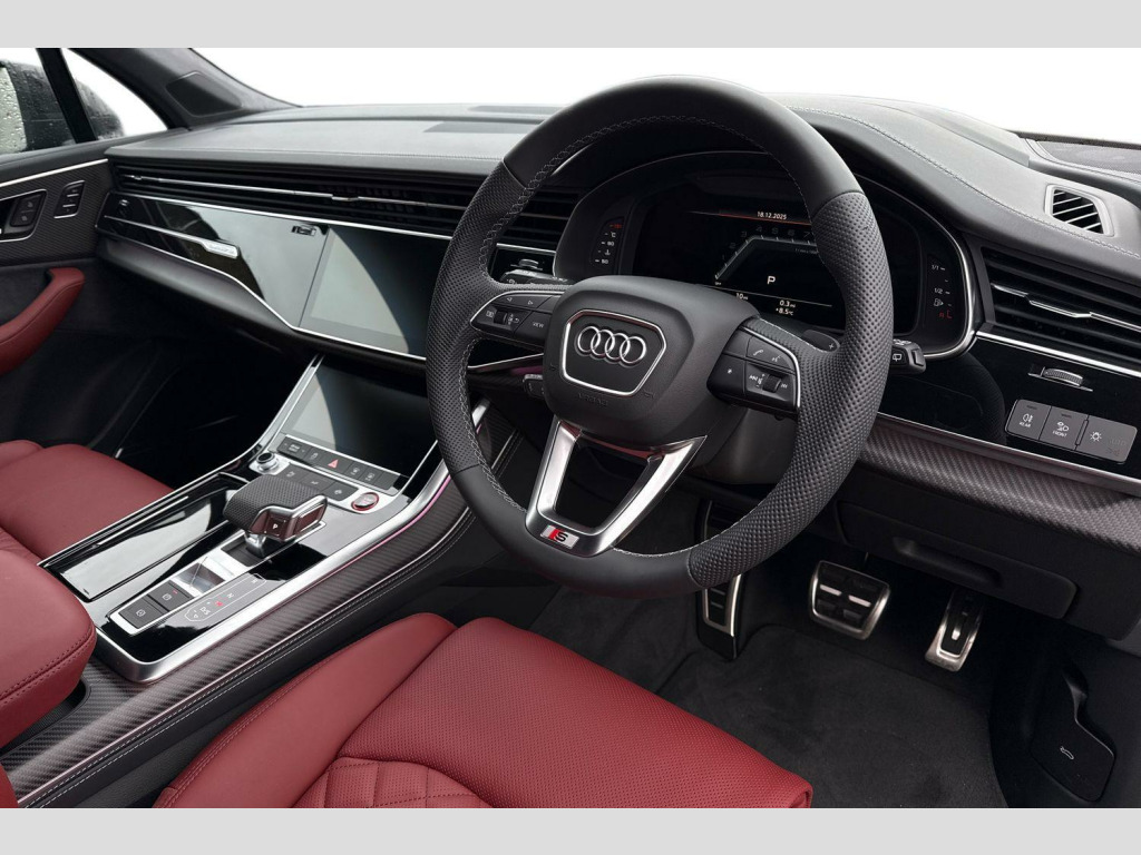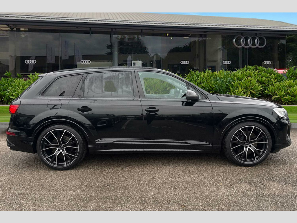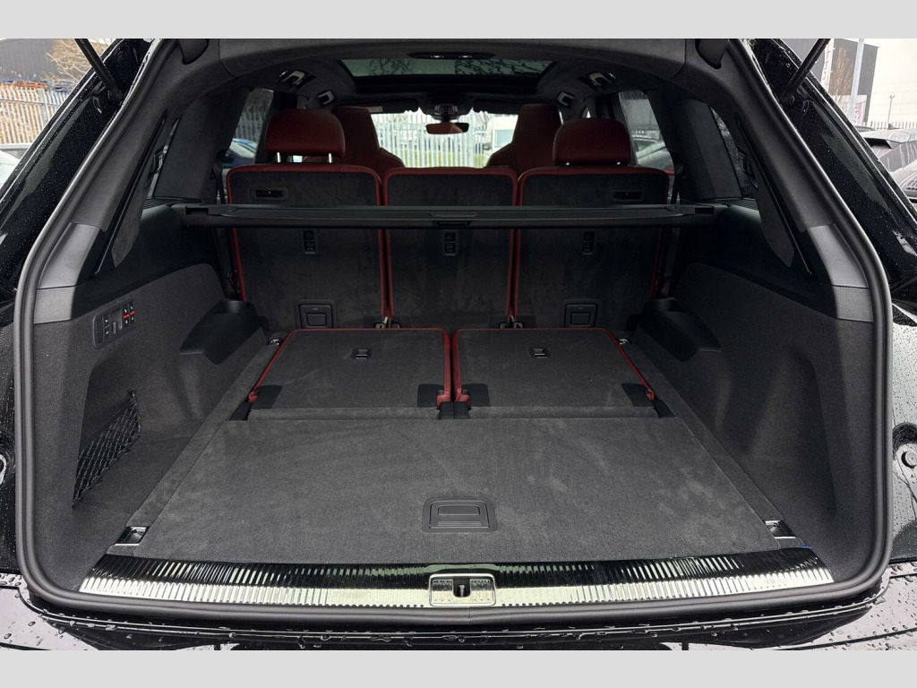 Technology is equally impressive, featuring Audi Virtual Cockpit Plus, Head-Up Display, MMI Navigation Plus, Bang & Olufsen sound system, wireless Apple CarPlay and Android Auto, Audi Connect services and a 360-degree camera with park assist. Safety and convenience are assured with adaptive cruise assist, lane departure warning, Audi pre-sense, keyless entry and power-operated tailgate – making this SQ7 Vorsprung a truly complete premium SUV. 22in Alloy Wheels - 10.0J 5 V-Spoke Star Audi Sport in Anthracite Black with High-Sheen Finish, 2 USB-C Ports with Charging Functionality in the Rear, 22in Alloy Wheels - 10.0J Muliti-Spoke S Design - Black Metallic - Gloss Turned Finish, 360 Degree Camera, 4-Way Lumbar Support for Front Seats, 7 Seats, Adaptive Windscreen Wipers with Integrated Washer Jets, Airbags - Driver - Front Passenger - Front Side - Curtain, All-Wheel Steering, Anti-Theft Alarm with Tow-Away Protection, Anti-Theft Wheel Bolts and Wheel Loosening Warning, Audi Beam, Audi Connect (3 Year Subscription From New), Audi Connect Safety and Service - e-call, Audi Connect with Amazon Alexa Integration, Audi Drive Select, Audi Music Interface in the Rear, Audi Phone Box Light with Wireless Charging, Audi Pre-Sense Front, Audi Smartphone Interface, Audi Virtual Cockpit Plus, Auto Dimming and Frameless Rear View Mirror, Bang and Olufsen Sound System, Black Dinamica Headlining, Black Roof Rails, Black Styling Package Plus, Camera-Based Traffic Sign Recognition, Carbon Door Mirrors, City Assist Pack, Comfort Front Centre Armrest, DAB Digital Radio, Deluxe Four-Zone Automatic Climate Control, Door Mirrors - Heated - Electrically Adjustable - Folding and Auto Dimming with Memory Function, Double Sun Visor, Driver and Front Passenger Memory Function for the Electrically Adjustable Front Seats, ESC - Electronic Stabilisation Control inc ABS - ASR and EDL, Electric Steering Wheel Adjustment, Electric Windows - Front and Rear, Electromechanical Active Roll Stabilisation, Electromechanical Parking Brake, Electromechanical Power Steering, Extended Leather Pack, Extended Pedestrian Protection Measures, First Aid Kit and Warning Triangle, Front and Rear Floor Mats, Fuel Tank 85L, HD Matrix LED Headlights with Audi Laser Light, Head-Up Display, Headlight Washers, Heated Front and Outer Rear Seats for The Second Row, Hold Assist, ISOFIX Child Seat Mounting for Front Passenger, Illuminated Door Sill Trims with S Logo, Inlays - Carbon Vector, Keyless Go with Remote Central Locking, LED Daytime Running Lights, LED Rear Lights Plus, Lane Departure Warning, Loading Edge Protection in Stainless Steel, Luggage Compartment Cover, Luggage Compartment Sill Protection in Stainless Steel, MMI Navigation Plus with MMI Touch, Manual Sunblinds for the Rear Side Windows and Manual Sunblinds for the Rear Window, Multi-Coloured Extended LED Interior Light Pack, Natural Voice Recognition, Operating Buttons in Matte Black, Park Assist with Parking Aid Plus, Parking Assist with Parking System Plus, Pedals in Stainless Steel, Power Door Closure, Power Operated Tailgate, Privacy Glass, S Line Badges on the Front Wings, S Line Bumpers in Full Body-Colour Paint Finish, S Line Roof Spoiler, S Line Styling Side Ventilation Grille and Side Skirts, S Specific Adaptive Air Sport Suspension, S Technology Pack Pro, Seat Belt Monitoring, Seat Ventilation and Massage Function for Front Seats, Steering Wheel - 3-spoke Heated Leather Multi-function with Shift Paddles, Tool Kit, Tour Pack, Tyre Pressure Loss Indicator, Tyre Repair Kit, Upper Interior Element with Contrast Stitching, Windshield with Heat Insulated Glass, quattro Sport Differential, 4-Zone Deluxe Automatic Climate Control, Adaptive Cruise Assist, All Wheel Steering, Aluminium Window Trims, Audi Application Store and Smartphone Interface, Audi Connect Navigation and Infotainment (3 Year Subscription From New), Audi Phone Box Light with Bluetooth and Wireless Charging, Audi Pre Sense Basic, Audi Pre-Sense Rear, Audi Side Assist, Collision Avoidance Assistant, Convenience Key, Convenience Key and Safelock, Cross Traffic Assist - Front, Cross Traffic Assist - Rear, Digital OLED Rear Combination Lamps, Electrically Opening and Closing Luggage Compartment Cover, Emergency Assist, Exit Warning, Panoramic Glass Sunroof, Park Assist Plus, Parking System Plus with 360 Degree Display, Predictive Efficiency Assistant, quattro All-Wheel Drive with Self-Locking Centre Differential, Seat Belt Reminder, Smartphone Interface includes Wireless Apple CarPlay and Android Auto, Start-Stop System, Turn Assist