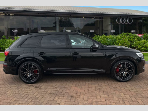S Technology Pack Pro, Red Painted Brake Calipers with S Logo, 2 USB-C Ports with Charging Functionality in the Rear, 22in Alloy Wheels - 10.0J 5 V-Spoke Star Audi Sport in Anthracite Black with High-Sheen Finish, 3-Spoke Flat Bottomed Leather - Multifunction Sport Steering Wheel, 4-Way Lumbar Support for Front Seats, 7 Seats, Airbags - Driver - Front Passenger - Front Side - Curtain, All-Wheel Steering, Anti-Theft Alarm with Tow-Away Protection, Anti-Theft Wheel Bolts and Wheel Loosening Warning, Audi Beam, Audi Connect (3 Year Subscription From New), Audi Connect Safety and Service - e-call, Audi Connect with Amazon Alexa Integration, Audi Drive Select, Audi Music Interface in the Rear, Audi Phone Box Light with Wireless Charging, Audi Pre-Sense Front, Audi Smartphone Interface, Audi Virtual Cockpit Plus, Auto Dimming and Frameless Rear View Mirror, Black Roof Rails, Black Styling Package Plus, Camera-Based Traffic Sign Recognition, Comfort Front Centre Armrest, Cruise Control with Speed Limiter, DAB Digital Radio, Deluxe Four-Zone Automatic Climate Control, Door Mirrors - Anthracite Black, Door Mirrors - Heated - Electrically Adjustable - Folding and Auto Dimming with Memory Function, ESC - Electronic Stabilisation Control inc ABS - ASR and EDL, Electric Windows - Front and Rear, Electromechanical Parking Brake, Electromechanical Power Steering, Extended Pedestrian Protection Measures, First Aid Kit and Warning Triangle, Front Sun Visors with Illuminated Vanity Mirrors, Front and Rear Floor Mats, Fuel Tank 85L, Heated Front Seats, Hold Assist, ISOFIX Child Seat Mounting for Front Passenger, Illuminated Door Sill Trims with S Logo, Inlays - Polished Oak with Grey Finish, Keyless Go with Remote Central Locking, LED Daytime Running Lights, LED Rear Lights Plus, Lane Departure Warning, Loading Edge Protection in Stainless Steel, Luggage Compartment Cover, Luggage Compartment Sill Protection in Stainless Steel, MMI Navigation Plus with MMI Touch, Matrix LED Headlights with Dynamic Front and Rear Indicators, Multi-Coloured Extended LED Interior Light Pack, Natural Voice Recognition, Operating Buttons in Matte Black, Park Assist with Parking Aid Plus, Pedals in Stainless Steel, Power Operated Tailgate, Privacy Glass, Quattro with Self-Locking Centre Differential, S Line Badges on the Front Wings, S Line Bumpers in Full Body-Colour Paint Finish, S Line Roof Spoiler, S Line Styling Side Ventilation Grille and Side Skirts, S Specific Adaptive Air Sport Suspension, Seat Belt Monitoring, Technology Pack, Tool Kit, Tyre Pressure Loss Indicator, Tyre Repair Kit, Upper Interior Element with Contrast Stitching, Windshield with Heat Insulated Glass