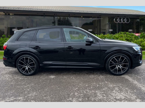 S Technology Pack Pro, Panoramic Glass Sunroof, Valcona Leather - S Super Sport Seats - Black with Grey Stitching, 2 USB-C Ports with Charging Functionality in the Rear, 22in Alloy Wheels - 10.0J 5 V-Spoke Star Audi Sport in Anthracite Black with High-Sheen Finish, 3-Spoke Flat Bottomed Leather - Multifunction Sport Steering Wheel, 4-Way Lumbar Support for Front Seats, 7 Seats, Airbags - Driver - Front Passenger - Front Side - Curtain, All-Wheel Steering, Anti-Theft Alarm with Tow-Away Protection, Anti-Theft Wheel Bolts and Wheel Loosening Warning, Audi Beam, Audi Connect (3 Year Subscription From New), Audi Connect Safety and Service - e-call, Audi Connect with Amazon Alexa Integration, Audi Drive Select, Audi Music Interface in the Rear, Audi Phone Box Light with Wireless Charging, Audi Pre-Sense Front, Audi Smartphone Interface, Audi Virtual Cockpit Plus, Auto Dimming and Frameless Rear View Mirror, Black Roof Rails, Black Styling Package Plus, Camera-Based Traffic Sign Recognition, Comfort Front Centre Armrest, Cruise Control with Speed Limiter, DAB Digital Radio, Deluxe Four-Zone Automatic Climate Control, Door Mirrors - Anthracite Black, Door Mirrors - Heated - Electrically Adjustable - Folding and Auto Dimming with Memory Function, ESC - Electronic Stabilisation Control inc ABS - ASR and EDL, Electric Windows - Front and Rear, Electromechanical Parking Brake, Electromechanical Power Steering, Extended Pedestrian Protection Measures, First Aid Kit and Warning Triangle, Front Sun Visors with Illuminated Vanity Mirrors, Front and Rear Floor Mats, Fuel Tank 85L, Heated Front Seats, Hold Assist, ISOFIX Child Seat Mounting for Front Passenger, Illuminated Door Sill Trims with S Logo, Inlays - Polished Oak with Grey Finish, Keyless Go with Remote Central Locking, LED Daytime Running Lights, LED Rear Lights Plus, Lane Departure Warning, Loading Edge Protection in Stainless Steel, Luggage Compartment Cover, Luggage Compartment Sill Protection in Stainless Steel, MMI Navigation Plus with MMI Touch, Matrix LED Headlights with Dynamic Front and Rear Indicators, Multi-Coloured Extended LED Interior Light Pack, Natural Voice Recognition, Operating Buttons in Matte Black, Park Assist with Parking Aid Plus, Pedals in Stainless Steel, Power Operated Tailgate, Privacy Glass, Quattro with Self-Locking Centre Differential, S Line Badges on the Front Wings, S Line Bumpers in Full Body-Colour Paint Finish, S Line Roof Spoiler, S Line Styling Side Ventilation Grille and Side Skirts, S Specific Adaptive Air Sport Suspension, Seat Belt Monitoring, Technology Pack, Tool Kit, Tyre Pressure Loss Indicator, Tyre Repair Kit, Upper Interior Element with Contrast Stitching, Windshield with Heat Insulated Glass