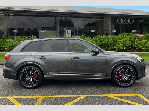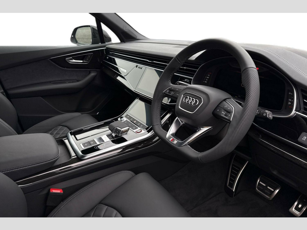Price shown includes a deposit contribution of £4500 when purchased on finance by 31/03/26. Solutions Personal Contract Plan. 5.9% APR Representative. Audi Financial Services. Terms and Conditions apply. Red Painted Brake Calipers with S Logo, 2 USB-C Ports with Charging Functionality in the Rear, 22in Alloy Wheels - 10.0J 5 V-Spoke Star Audi Sport in Anthracite Black with High-Sheen Finish, 3-Spoke Flat Bottomed Leather - Multifunction Sport Steering Wheel, 4-Way Lumbar Support for Front Seats, 7 Seats, Airbags - Driver - Front Passenger - Front Side - Curtain, All-Wheel Steering, Anti-Theft Alarm with Tow-Away Protection, Anti-Theft Wheel Bolts and Wheel Loosening Warning, Audi Beam, Audi Connect (3 Year Subscription From New), Audi Connect Safety and Service - e-call, Audi Connect with Amazon Alexa Integration, Audi Drive Select, Audi Music Interface in the Rear, Audi Phone Box Light with Wireless Charging, Audi Pre-Sense Front, Audi Smartphone Interface, Audi Virtual Cockpit Plus, Auto Dimming and Frameless Rear View Mirror, Black Roof Rails, Black Styling Package Plus, Camera-Based Traffic Sign Recognition, Comfort Front Centre Armrest, Cruise Control with Speed Limiter, DAB Digital Radio, Deluxe Four-Zone Automatic Climate Control, Door Mirrors - Anthracite Black, Door Mirrors - Heated - Electrically Adjustable - Folding and Auto Dimming with Memory Function, ESC - Electronic Stabilisation Control inc ABS - ASR and EDL, Electric Windows - Front and Rear, Electromechanical Parking Brake, Electromechanical Power Steering, Extended Pedestrian Protection Measures, First Aid Kit and Warning Triangle, Front Sun Visors with Illuminated Vanity Mirrors, Front and Rear Floor Mats, Fuel Tank 85L, Heated Front Seats, Hold Assist, ISOFIX Child Seat Mounting for Front Passenger, Illuminated Door Sill Trims with S Logo, Inlays - Polished Oak with Grey Finish, Keyless Go with Remote Central Locking, LED Daytime Running Lights, LED Rear Lights Plus, Lane Departure Warning, Loading Edge Protection in Stainless Steel, Luggage Compartment Cover, Luggage Compartment Sill Protection in Stainless Steel, MMI Navigation Plus with MMI Touch, Matrix LED Headlights with Dynamic Front and Rear Indicators, Multi-Coloured Extended LED Interior Light Pack, Natural Voice Recognition, Operating Buttons in Matte Black, Park Assist with Parking Aid Plus, Pedals in Stainless Steel, Power Operated Tailgate, Privacy Glass, Quattro with Self-Locking Centre Differential, S Line Badges on the Front Wings, S Line Bumpers in Full Body-Colour Paint Finish, S Line Roof Spoiler, S Line Styling Side Ventilation Grille and Side Skirts, S Specific Adaptive Air Sport Suspension, Seat Belt Monitoring, Technology Pack, Tool Kit, Tyre Pressure Loss Indicator, Tyre Repair Kit, Upper Interior Element with Contrast Stitching, Windshield with Heat Insulated Glass