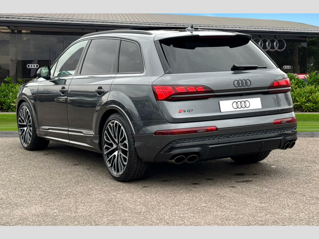 Feast your eyes on this Brand New Audi SQ7 SUV Vorsprung TFSI in Daytona Grey with its 22" multi-spoke alloy wheels which look superb out on the roads. The HD Matrix LED headlights with Digital OLED rear lights create that strong visibility in all weather conditions.
