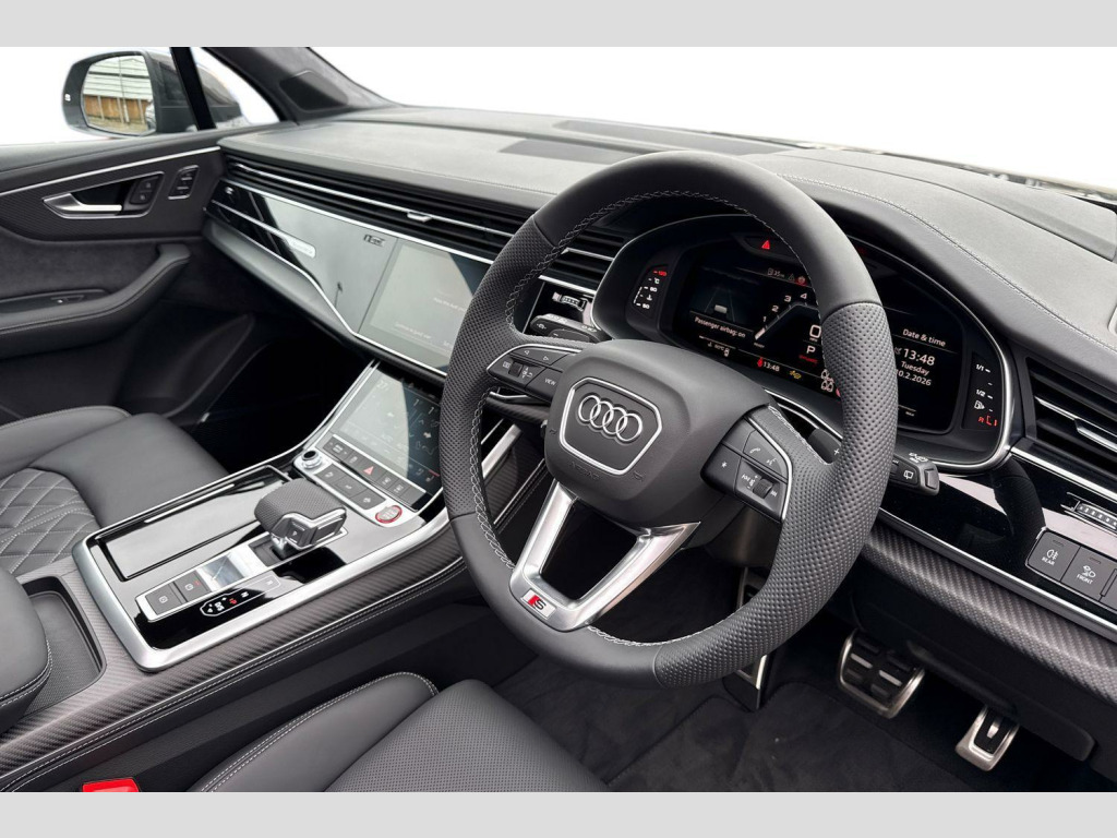 Red Painted Brake Calipers with S Logo, Valcona Leather - S Super Sport Seats - Black with Grey Stitching, 2 USB-C Ports with Charging Functionality in the Rear, 22in Alloy Wheels - 10.0J Multi-Spoke S Design - Black Metallic - Gloss Turned Finish, 360 Degree Camera, 4-Way Lumbar Support for Front Seats, 7 Seats, Adaptive Windscreen Wipers with Integrated Washer Jets, Airbags - Driver - Front Passenger - Front Side - Curtain, All-Wheel Steering, Anti-Theft Alarm with Tow-Away Protection, Anti-Theft Wheel Bolts and Wheel Loosening Warning, Audi Beam, Audi Connect (3 Year Subscription From New), Audi Connect Safety and Service - e-call, Audi Connect with Amazon Alexa Integration, Audi Drive Select, Audi Music Interface in the Rear, Audi Phone Box Light with Wireless Charging, Audi Pre-Sense Front, Audi Smartphone Interface, Audi Virtual Cockpit Plus, Auto Dimming and Frameless Rear View Mirror, Bang and Olufsen Sound System, Black Dinamica Headlining, Black Roof Rails, Black Styling Package Plus, Camera-Based Traffic Sign Recognition, Carbon Door Mirrors, City Assist Pack, Comfort Front Centre Armrest, DAB Digital Radio, Deluxe Four-Zone Automatic Climate Control, Door Mirrors - Heated - Electrically Adjustable - Folding and Auto Dimming with Memory Function, Double Sun Visor, Driver and Front Passenger Memory Function for the Electrically Adjustable Front Seats, ESC - Electronic Stabilisation Control inc ABS - ASR and EDL, Electric Steering Wheel Adjustment, Electric Windows - Front and Rear, Electromechanical Active Roll Stabilisation, Electromechanical Parking Brake, Electromechanical Power Steering, Extended Leather Pack, Extended Pedestrian Protection Measures, First Aid Kit and Warning Triangle, Front and Rear Floor Mats, Fuel Tank 85L, HD Matrix LED Headlights with Audi Laser Light, Head-Up Display, Headlight Washers, Heated Front and Outer Rear Seats for The Second Row, Hold Assist, ISOFIX Child Seat Mounting for Front Passenger, Illuminated Door Sill Trims with S Logo, Inlays - Carbon Vector, Keyless Go with Remote Central Locking, LED Daytime Running Lights, LED Rear Lights Plus, Lane Departure Warning, Loading Edge Protection in Stainless Steel, Luggage Compartment Cover, Luggage Compartment Sill Protection in Stainless Steel, MMI Navigation Plus with MMI Touch, Manual Sunblinds for the Rear Side Windows and Manual Sunblinds for the Rear Window, Multi-Coloured Extended LED Interior Light Pack, Natural Voice Recognition, Operating Buttons in Matte Black, Park Assist with Parking Aid Plus, Parking Assist with Parking System Plus, Pedals in Stainless Steel, Power Door Closure, Power Operated Tailgate, Privacy Glass, S Line Badges on the Front Wings, S Line Bumpers in Full Body-Colour Paint Finish, S Line Roof Spoiler, S Line Styling Side Ventilation Grille and Side Skirts, S Specific Adaptive Air Sport Suspension, S Technology Pack Pro, Seat Belt Monitoring, Seat Ventilation and Massage Function for Front Seats, Steering Wheel - 3-spoke Heated Leather Multi-function with Shift Paddles, Tool Kit, Tour Pack, Tyre Pressure Loss Indicator, Tyre Repair Kit, Upper Interior Element with Contrast Stitching, Windshield with Heat Insulated Glass, quattro Sport Differential