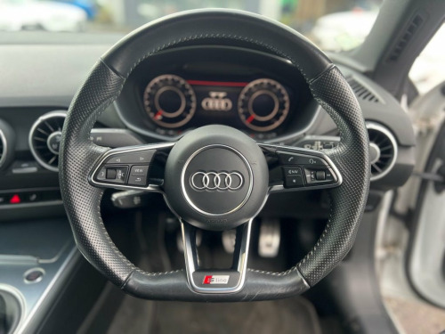 This 2017 Audi TT TFSI Black Edition boasts exceptionally low mileage for its age, having covered just 54,250 miles. As a Euro 6 compliant vehicle, it features a 1.8 litre petrol engine and is presented in the desirable Black Edition trim. This combination offers a compelling blend of performance and style, making it a standout choice for those seeking a premium sports coupe. With an impressive fuel economy of 47 miles per gallon, this Audi TT demonstrates excellent efficiency, a notable advantage over many comparable vehicles. Its low CO2 emissions further contribute to its appeal, indicating a more environmentally conscious driving experience. This particular model offers a refined driving experience coupled with the sophisticated styling that Audi is renowned for. 12V Socket, 19in Alloy Wheels - 5-Spoke Blade Design, 4-Way Electric Lumbar Support for Front , ABS - Anti-Lock Braking System, AMI - Audi Music Interface, All Weather LED Headlights, Anti Theft Locking Wheel Bolts, Anti-Theft Alarm, Audi Drive Select, Audi Virtual Cockpit, Auto-Dimming Rear-View Mirror, Bang and Olufsen Sound System, Black High Gloss Package, Black Styling Package, Bluetooth Mobile Telephone Preparation, Cruise Control, DAB Digital Radio, Door Mirrors - Black Housing, Door Mirrors - Electrically Adjustable a, Door Sill Trims with S Line Logo, Electric Windows - Front, Electromechanical Parking Brake, Email - Calendar and Text Messages can b, Extended Aluminium Look in Inter