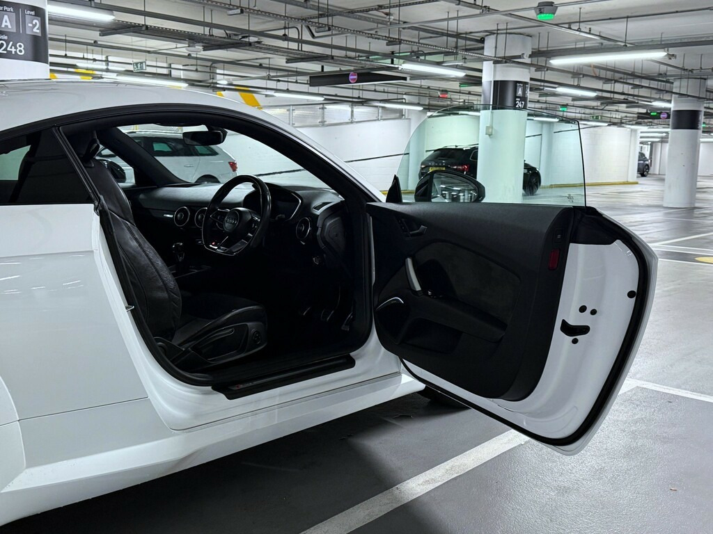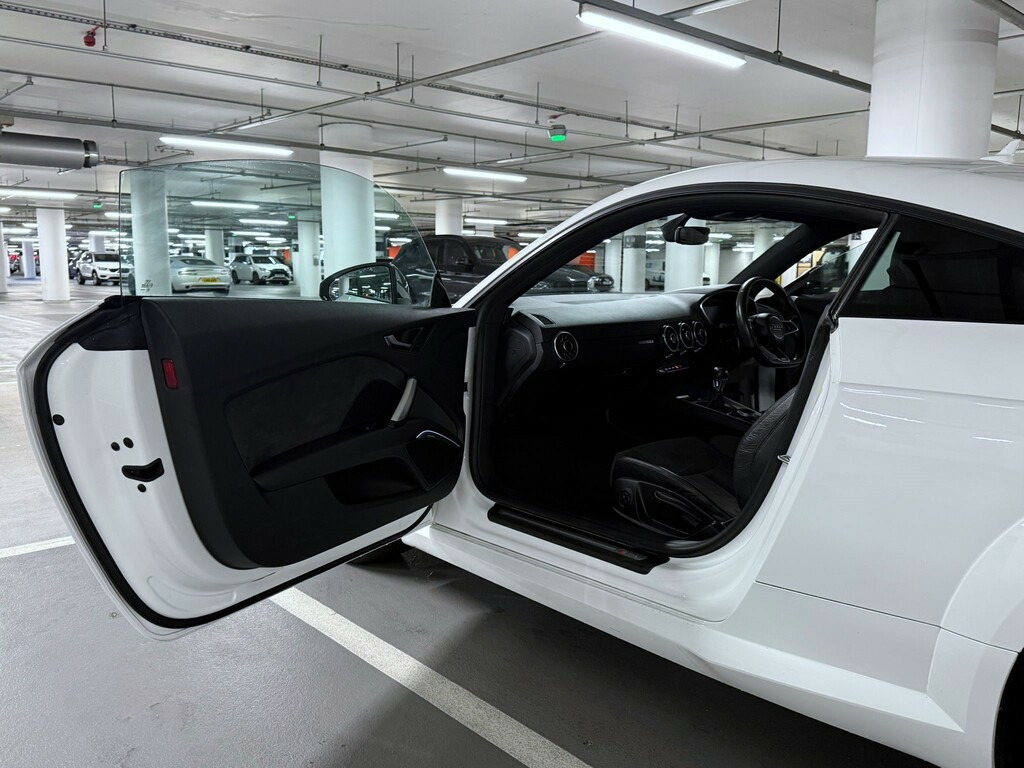 This 2017 Audi TT 1.8 TFSI Black Edition Coupe with a sleek black exterior and only 76000 miles on the clock is the perfect combination of style and performance. With a 1.8 TFSI petrol engine and a manual transmission, this Euro 6 (s/s) compliant vehicle is both powerful and ULEZ compliant. The MOT expires on 20/10/2026, giving you peace of mind. The coupe body style boasts 4 seats and 3 doors, making it perfect for a small family or a couple on the go. Inside, the car is equipped with features such as a 12V socket, Audi Music Interface (AMI), Bang and Olufsen Sound System, Bluetooth mobile telephone preparation, and DAB digital radio, ensuring that you stay connected and entertained on the road. Don't miss out on this opportunity to own a stylish and reliable Audi TT. v socket, ami - audi music interface, bang and olufsen sound system, bluetooth mobile telephone preparation, dab digital radio, mmi radio, 19in alloy wheels - 5-spoke blade design audi sport - black gloss, anti theft locking wheel bolts, black high gloss package, black styling package, door mirrors - black housing, door mirrors - electrically adjustable and heated with built-in led indicators, electric windows - front, privacy glass, retractable rear spoiler, s line badge on the steering wheel, s line badges on the front wings, s line body styling, tyre repair kit, windscreen with sunband, 4-way electric lumbar support for front seats, audi virtual cockpit, auto-dimming rear-view mirror, door sill trims with s line logo, email - calendar and text messages can be displayed on your vehicles mmi, extended aluminium look in interior, flat-bottomed 3-spoke leather-trimmed multi-function sport steering wheel, front centre armrest, front sports seats, gear lever knob in black perforated leather, headlining - black, inlays - matt brushed aluminium, keyless go, manual air conditioning, seats - manually adjustable forward-backwards positioning - including backrest angle, split-folding rear seats, tool kit - warning triangle and car jack, abs - anti-lock braking system, anti-theft alarm, electromechanical parking brake, first aid kit, front airbags with front passenger deactivation, isofix child seat mounting, all weather led headlights, headlights washers, light and rain sensor, audi drive select, cruise control, progressive steering, rear parking sensors, tyre pressure loss indicator