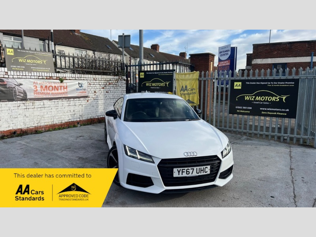 Dear customers let me introduce you to our beautiful Audi TT 1.8 TFSI Black Edition Coupe 3dr Petrol Manual Euro 6 (s/s) (180 ps). Good Condition. HPI Clear. MOT 12/01/2027. Car will come with Long MOT. It Has Main Dealer Service History. Comes with warranty, 2keys and Free 12MONTHS roadside recovery. You are in safe Hands as we have signed our dealer promise with AA. Delivery on Your Doorstep, Credit & Debit Cards Accepted. Part exchange welcome. We Offer Zero Deposit Finance with Rates starting from 5.5% Flat Rate ( subject to status) and deal with different panel of Lenders to get you the best Possible Rates to suit your budget. We can arrange your finance Online, over the phone or in person. You can Also apply finance directly on Our website at www.wizmotors.co.uk or call us on 01582 383038 We offer Part Exchange Valuations and give you the best possible Price for you Part Exchange car. wiz motors ltd. Provides high standard of Customer care over 06 Years. Our Friendly and Experienced Staff are always here to Help you with your finance packages, settlements, part exchange valuations and all aspects of your purchase to help making your purchase a very pleasant experience and make your next purchase a memorable one. We prepare our vehicles to a high standard. All our cars are mechanically inspected by our experienced engineers and HPI checked. Full HPI report, vehicle comes with warranty, Free 12MONTHS roadside recovery with AA. 5days Drive away Insurance can be arranged (Charges Apply). All Dealer facilities available. We accept all major debit and credit cards. We deliver cars Nationwide to your door step. The vehicle specification displayed may not be exact for this vehicle. Please contact us to confirm the precise specifications. Always check Outstanding recalls. Please ask the salesman if the recall will be carried out before you make your purchase. Calll 01582 383038, for any further details, Our address is Wizmotors ltd.Front Parking Yard, Britania Estate,Leagrave Road. Luton, Beds. LU3 1RJ, Opposite 320 LEAGRAVE ROAD, Luton, LU31Rj Open 7days. Vehicle admin fee £99 Note. At Wiz Motors, we check every vehicle for any outstanding recalls. This can be found on https://www.gov.uk/check-mot-history Before purchasing a vehicle from our dealership, please check the car on the link above for your own piece of mind. Any recall is repaired free of charge by the manufacture. Give us a call if you find any outstanding recall so we can book this vehicle with manufacturer to sort it out 12V Power Socket, 19in Alloy Wheels, ABS, Adjustable Steering, Air Conditioning, Alarm, Alloy Wheels, Automatic Headlight Levelling, Automatic Rearview Mirror Dimming, Bluetooth, Body Coloured Bumpers, Brake Assist, CD Multichanger, CD Player, Cassette Player, Catalytic Converter, Central Locking, Climate Control, Cruise Control, Cup Holders, DVD Player, Day/night Rearview Mirror, Daytime Running Lights, ESP, Electric Adjustable Seats, Electric Folding Mirrors, Electric Heated Seats, Electric Mirrors, Electric Windows, Engine Immobiliser, Folding Rear Seats, Front Airbags, Front Fog Lights, Heated Door Mirrors, Heated Rear Windshield, Heated Windscreen, ISOFix Anchor Point, Keyless Door Locks, LED Lights, Lane Assist, Leather Seats, MOT, MP3, MP3 Player Connection, Parking Assistance, Parking Sensors, Power Assisted Steering, Privacy/Tinted Glass, Radio, Rain Sensor, Reading Lights, Rear Air Vents, Rear Airbags, Rear Spoiler, Safety Belts, Safety Belts Rear, Satellite Navigation, Service History, Side Impact Airbags, Spare Wheel, Speakers, Speed Limiter, Sports Seats, Start Stop System, Steering Wheel Controls, Traction Control, Tuning, V5 Registration Document