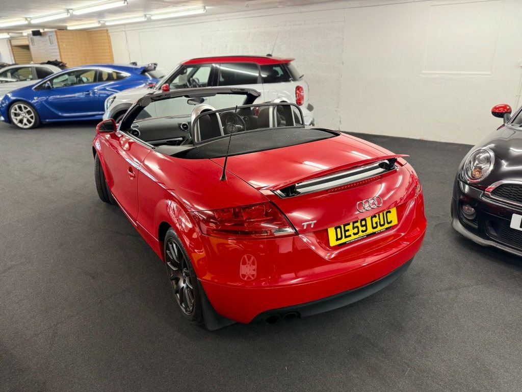 Audi TT Roadster Make: Audi Model: TT Year: 2009 Mileage: 65,000 Engine: 1.8L Turbo Petrol Gearbox: 6-Speed Manual Features: Bright Red, Electric Folding Soft-Top Roof, Upgraded Headunit with inbuilt Satellite Navigation, Bluetooth, Air-Conditioning, Graphite Grey Alloy Wheels, Flat Bottom Steering Wheel, Tinted Windows, Remote Central Locking, Electric Folding Rear Spoiler. 17in 7 Y- Spoke Alloy Wheels, 3Spoke Sports Leather Steering Wheel, 5- channel Amplifier, 9 Speakers, Chorus Radio & single CD player, Front Passenger Airbag deactivation, Front Passenger Seat isofix location poi, Front Sports Seats, Front floor mats, Height adjust Front Seats, Hood- Beige, Hood- Black, Hood- Dark Grey, Scuff plates with metal inlays, Twin Aluminium rollover protection hoops