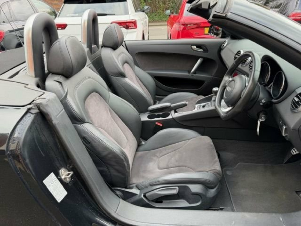 This lovely 2010 10-Reg Audi TT 1.8 TFSI Roadster Convertible must be seen!! presented in stunning brilliant black with black half leather/suede S-line Trim, it has covered just 89,000 miles with just 3 previous owners and tons of receipts inc 13 service stamps in the book!! it comes with half leather sports trim, xenon headlamps,19" anthracite alloy wheels (standard 16" alloys also included in the sale) climate control, USB/media interface and fully colour coded exterior, fantastic condition for its age and being petrol is fully ULEZ compliant!!! 17in 7 Y- Spoke Alloy Wheels, 3Spoke Sports Leather Steering Wheel, 5- channel Amplifier, 9 Speakers, Chorus Radio & single CD player, Front Passenger Airbag deactivation, Front Passenger Seat isofix location poi, Front Sports Seats, Height adjust Front Seats, Hood- Beige, Hood- Black, Hood- Dark Grey, Twin Aluminium rollover protection hoops