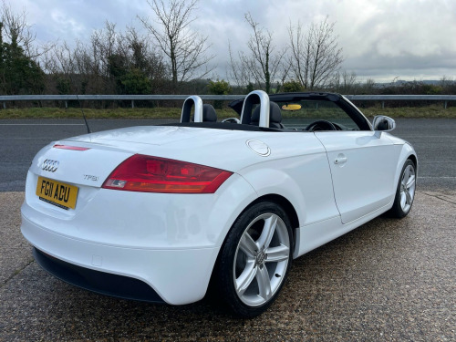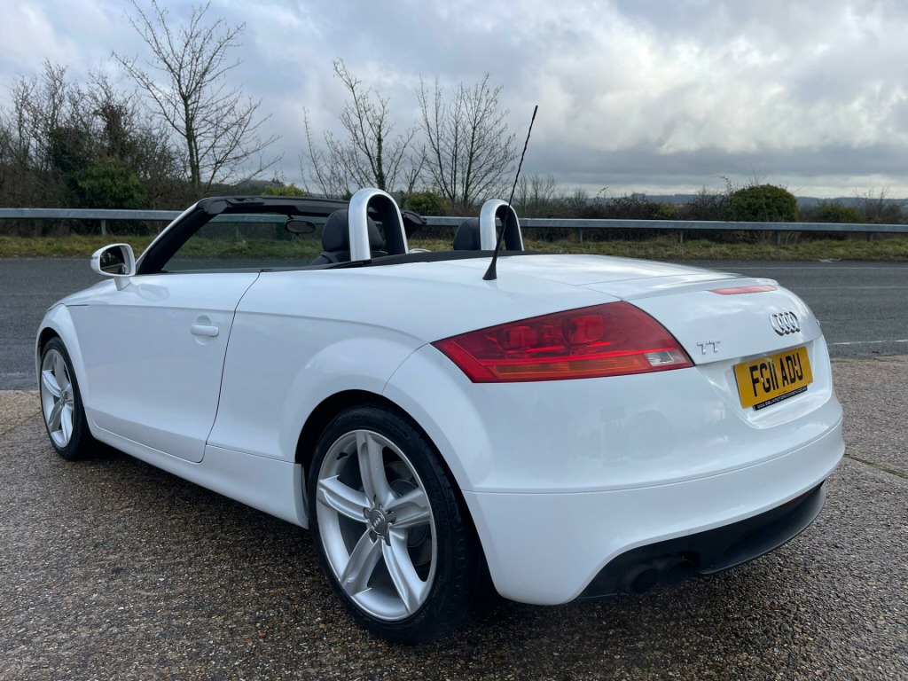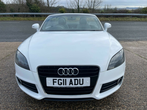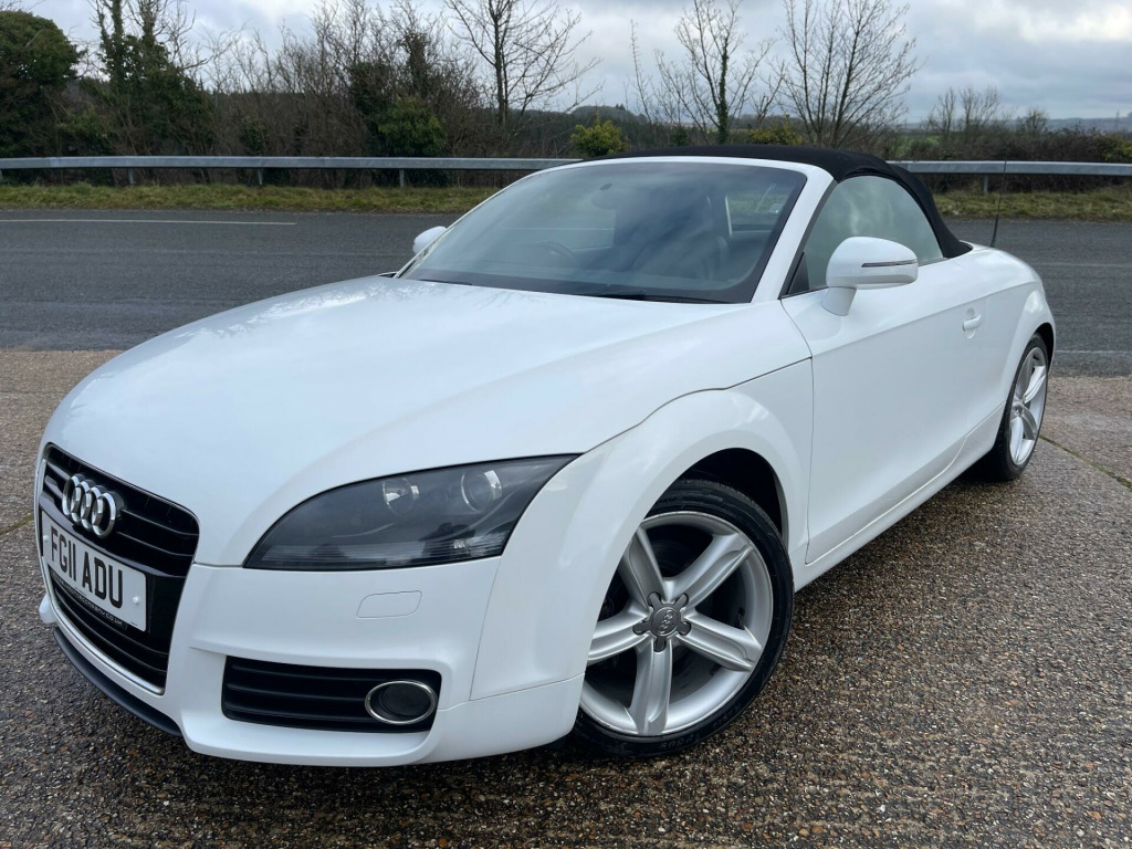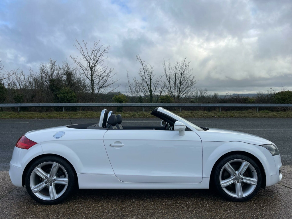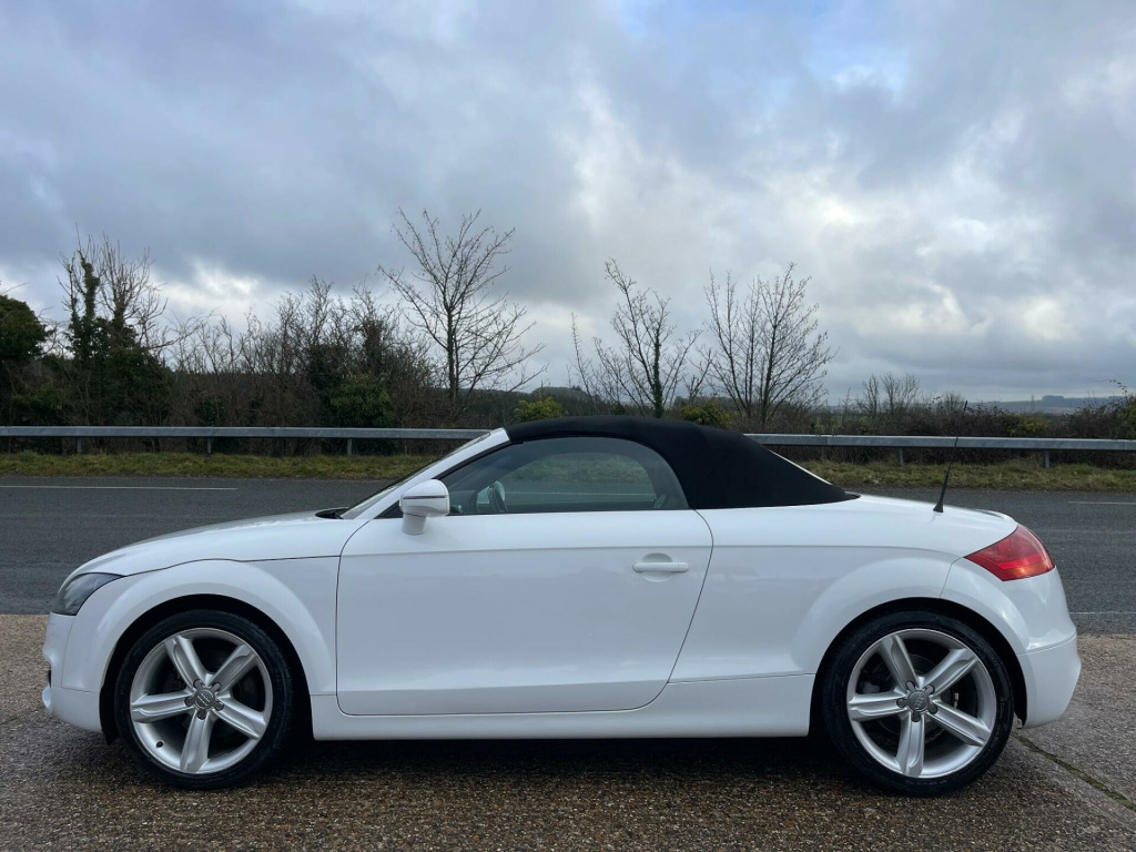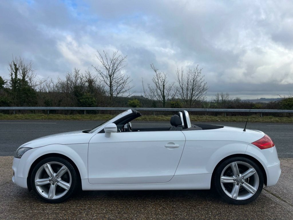EXCELLENT SERVICE HISTORY. A lovely, low mileage TT roadster presented in Ibis White with Black leather/Alcantara heated seats. The vehicle benefits from an Apple CarPlay/Android auto system being fitted allowing for satellite navigation, Bluetooth connectivity, USB connection and DAB tuner. A great looking and driving TT, bodywork and interior condition are both very clean throughout, very well maintained and desirable low mileage. Current MOT through to October 2026 with no advisories. Serviced at the following mileages-Service 1 15,294 milesService 2 23,960 milesService 3 30,416 milesService 4 39,290 milesService 5 46,386 milesService 6 57,207 milesService 7 61,905 milesService 8 64,791 milesA great opportunity to purchase a low mileage, well serviced, excellent condition TT Roadster before prices rise. Supplied with a full, original owners book pack, invoice folder, two keys and fitted mat set. Part exchange welcome. HPI clear. Minimum 3 month warranty with up to 24 months available, inspections welcome. Highly rated for customer service by AutoTrader. Please call ahead to confirm availability and to avoid disappointment. Visit our website for finance options and online applications., ated front seats, ipod connection, leather & alcantara-, satnav, usb connection, 17in 7 y- spoke alloy wheels, 3spoke sports leather steering wheel, 5- channel amplifier, 9 speakers, chorus radio & single cd player, front passenger airbag deactivation, front passenger seat isofix location point, front sports seats, height adjust front seats, hood- beige, hood- black, hood- dark grey, twin aluminium rollover protection hoops