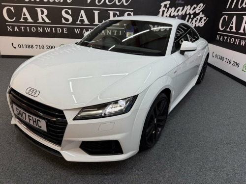 17 AUDI TT 1.8 TFSI S-LINE COUPE Finished in Ibis white with Ebony interior .Genuine 59000 miles by one careful lady owner .Viewing and test drive essential. Please take the time to check our feedback & reviews .We have all the correct paperwork ,handbooks & 2 keys.Everything in good working order drives without fault .Car will be sold with fresh service ,full mot ,warranty,12 months AA cover,& HPI certificate.We welcome any inspection OUTRIGHT PRICE £13990 SALES LINE 01388 710200 EMAIL [email protected] WEB www.martinbellcarsales.co.uk 12V Socket, 19in Alloy Wheels - 5-Arm Star Design, 4-Way Electric Lumbar Support for Front , ABS - Anti-Lock Braking System, All Weather LED Headlights, AMI - Audi Music Interface, Anti Theft Locking Wheel Bolts, Anti-Theft Alarm, Audi Drive Select, Audi Virtual Cockpit, Auto-Dimming Rear-View Mirror, Bluetooth Mobile Telephone Preparation, Body Coloured Door Mirrors, Cruise Control, DAB Digital Radio, Door Mirrors - Electrically Adjustable a, Door Sill Trims with S Line Logo, Electric Windows - Front, Electromechanical Parking Brake, Email - Calendar and Text Messages can b, Extended Aluminium Look in Interior, First Aid Kit, Flat-Bottomed 3-Spoke Leather-Trimmed Mu, Front Airbags with Fron