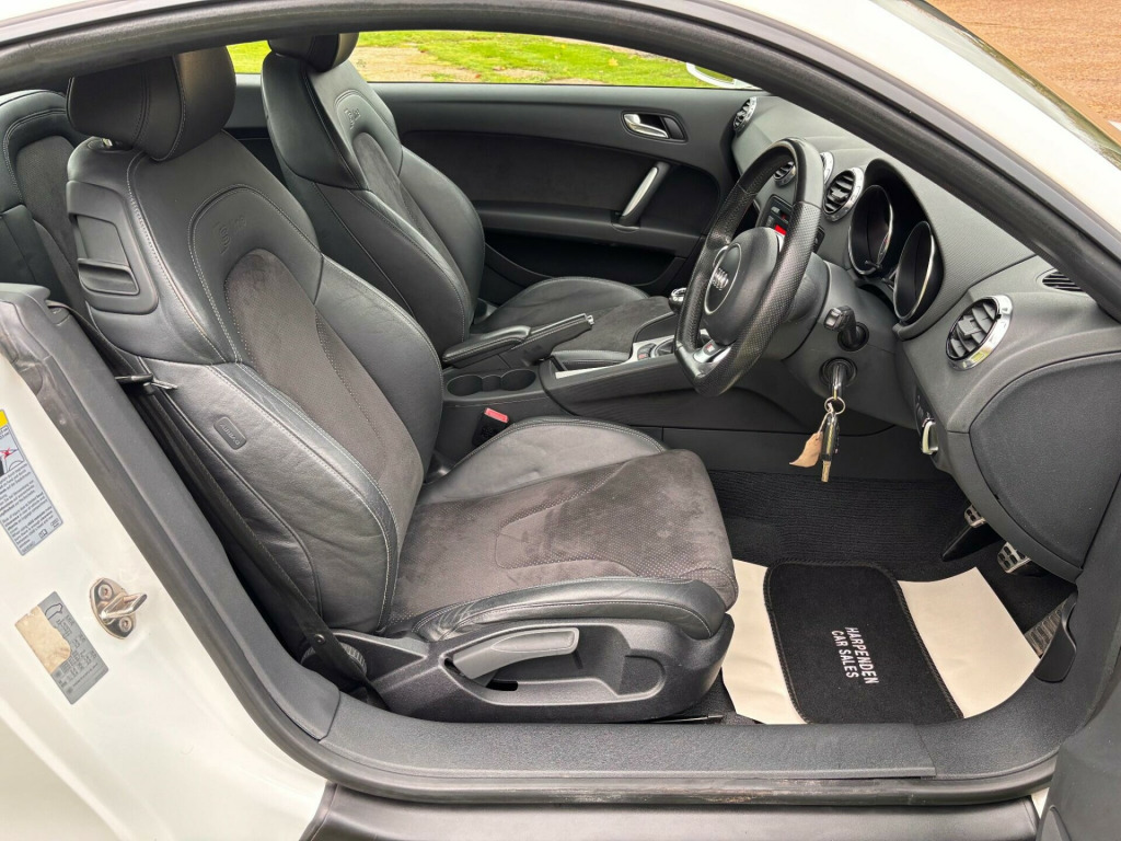 REVIEW WALK-ROUND VIDEO WITHIN THE PICTURES.This Audi TT TFSI S line from 2012 boasts an impressive provenance with only two owners and a low mileage of 74,000 miles for its age. It features a 1.8 litre petrol engine and comes with a 3 month warranty for your peace of mind. The MOT till March 2026- 12 months on request. Partial service history, with the last service completed on 22nd October 2025 at 71,310 miles. Notable features include an iPod connection, Aux, Bluetooth mobile telephone preparation, Daylight running Bi-Xenon Plus headlights, and electronic climate control, ensuring a comfortable and connected driving experience.Harpenden Cars Limited operates from a semi-rural and private location and accept appointments most times as arranged.All our vehicles are handpicked, with specific attention paid to ensuring an outstanding pedigree. Always accident free, HPi clear and usually completely 'stock' as standard from the factory. We are proud of our ability to source the very best vehicles available in the UK. We prepare to a good degree, perform servicing and MOT if required, professional valet and then store security undercover. Retail ready for viewing, inspection, and immediate purchase.We hope to have removed the need to tireless search for the right car yourself, instead to put your trust into a car trader with a genuine passion for what they do.All Prices Include a Comprehensive 3-month Warranty, which can be extended up to 3 years, a HPi certificate, full VOSA MOT history.This particular Audi TT TFSI S line stands out with several key highlights that make it a compelling choice. Its fuel economy is a notable 44 mpg, indicating efficient running costs compared to many similar vehicles. Furthermore, it sits in a low insurance group, which can lead to significant savings on your annual insurance premiums. The low CO2 emissions also contribute to its appeal, suggesting a more environmentally conscious performance. These factors combined demonstrate that this vehicle offers excellent value and performance for its class. lol v power socket, 18in alloy wheels - 5-spoke design, abs - anti-lock braking system, asr - anti slip regulation, aux-in socket, airbags - driver, airbags - front passenger, airbags - front side system, anti-theft alarm, climate control - electronic, cloth headlining in black, concert radio, door mirrors - electrically adjustable and heated, drivers information system - dis, esp - electronic stability programme, electric windows - front, front fog lights, headlights - bi-xenon plus, headlights washers, inlays - matt brushed aluminium, power steering - electromechanical/servotronic speed sensitive, remote central locking, s line suspension, seats - drivers manual height adjustment, split-folding rear seats, steering wheel - 3-spoke leather - multi-function - sports - shift paddles, steering wheel - height and reach adjustable, steering wheel - multi-function, suspension - s line, tyre mobility system, ipod connection, mobile telephone preparation - bluetooth interface, alcantara - leather - sports seats - black with jet grey stitching
