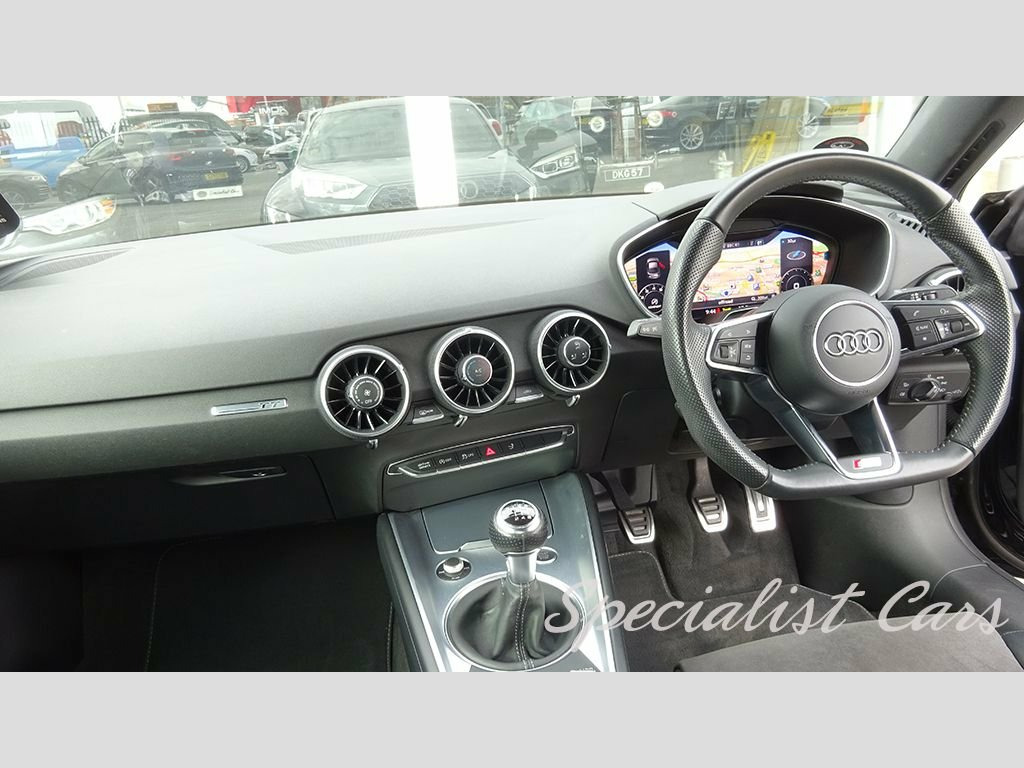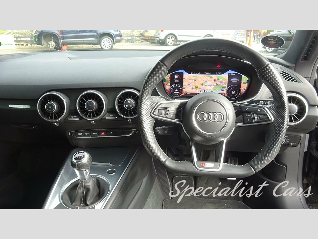 Audi TT S Line 1.8T FSI Coupe 180 3dr. Brilliant Black A gorgeous example owned by the same family from new, fully documented service history and superb specification with £2550 factory Technology Package featuring Audi Connect Audi Virtual Cockpit Privacy glass Audi Phone Box Door mirrors - Auto-dimming on the driver's side, folding and heated 19in Alloy Wheels - 5-Arm Star Design 4-Way Electric Lumbar Support for Front Seats All Weather LED Headlights AMI - Audi Music Interface Audi Drive Select Audi Phone Box - Auto-Dimming Rear-View Mirror Bluetooth Mobile Telephone Preparation Body Coloured Door Mirrors Brilliant Black Cruise Control DAB Digital Radio Door Mirrors - Electrically Adjustable and Heated with Built-in LED Indicators Door Mirrors - Heated-Electrically Adjustable-Folding-Auto-Dimming Drivers Door Sill Trims with S Line Logo Email - Calendar and Text Messages can be Displayed on your Vehicles MMI Extended Aluminium Look in Interior Flat-Bottomed 3-Spoke Leather-Trimmed Multi-Function Sport Steering Wheel Front Centre Armrest Front Sports Seats Gear Lever Knob in Black Perforated Leather Headlights Washers Headlining - Black Inlays - Matt Brushed Aluminium ISOFIX Child Seat Mounting Keyless Go Light and Rain Sensor Manual Air Conditioning MMI Radio Privacy Glass Progressive Steering Rear Parking Sensors Retractable Rear Spoiler S Line Badge on the Steering Wheel S Line Badges on the Front Wings S Line Body Styling Seats - Manua Audi Phone Box, Door Mirrors - Heated-Electrically Adjus, Privacy Glass, Technology Package