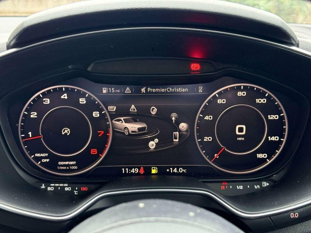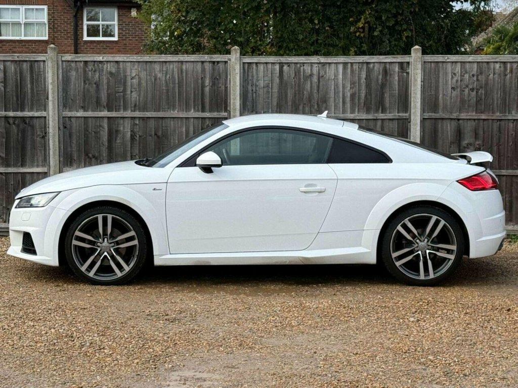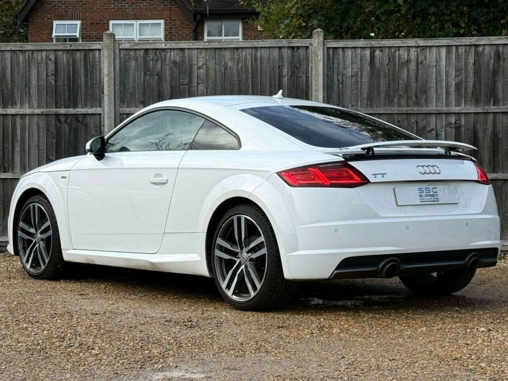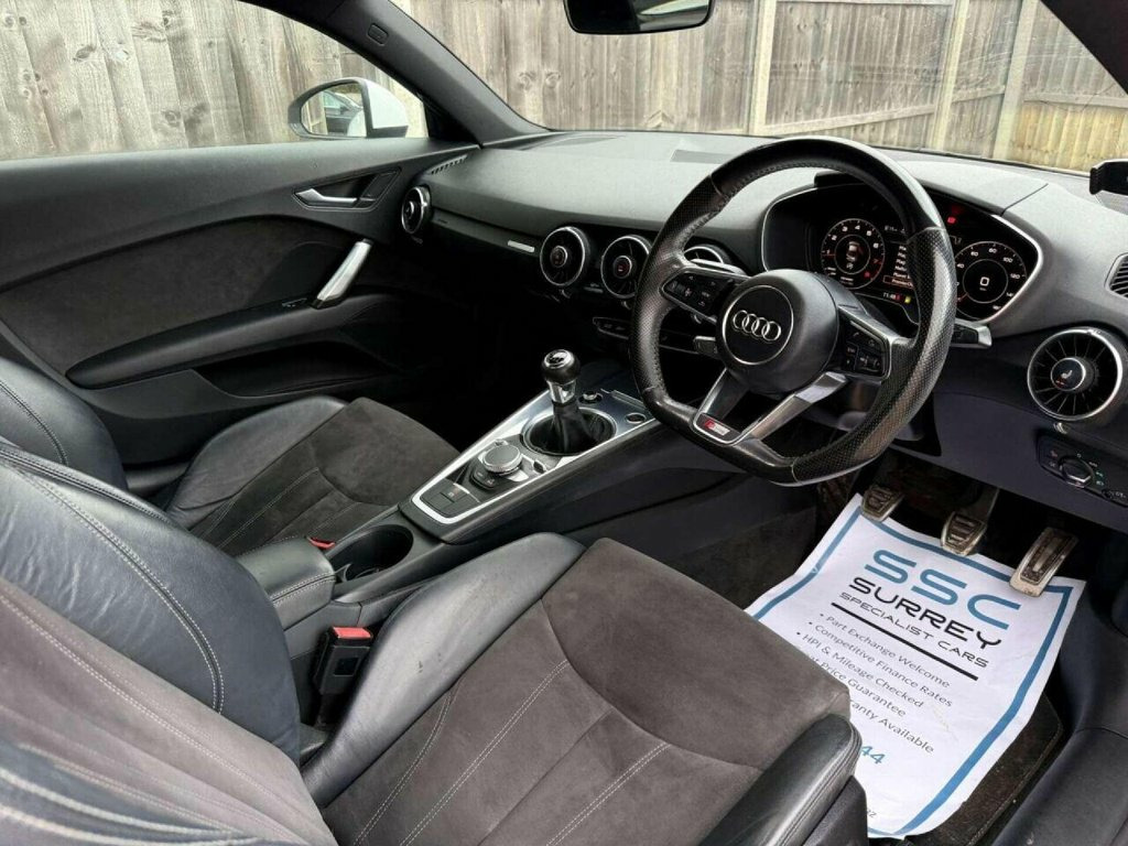 Surrey Specialist Cars are proud to present our lovely Audi TT S Line TFSI. This amazing car comes with Service History, finished in stunning metallic white with full leather seats. The car has a Long MOT until September 2026 so it is ready to go. The 1.8L Petrol engine offers superb economy at over 48 MPG on combined cycle. Features Include Multifunction Steering Wheel, Trip Computer, Parking Sensors, Cruise Control, Speed Limiter, Stereo Control, Audi Drive Select, FM/DAB Radio, CD Player, Bluetooth Audio, SD Card, USB Input, AUX Input, Start/Stop System, 12V Charging Socket, two Cup Holders, 6 Speed Manual Gearbox, Electronic Hand Brake, Cup Holder, 19 Inch Alloy Wheels and two Remote Control Keys to name a few. We are open 7 days a week, and prepare all of our cars to the highest standards. We have a Click & Collect option available, and can also arrange delivery on request. All cars are HPI clear and a full history report is provided with every car. We welcome any inspection and viewing is highly recommended. All cars are available with our AA warranty starting from just ?150 for 3 months. Debit and credit card facilities are available and we offer competitive finance packages. If you have any questions or would like to view any of our cars give us a call or drop us a message on whatsapp 01483 363 144 to arrange an appointment with one of our team. We also offer full bespoke walkaround videos on request. We are always on the lookout for high quality stock, if you have 19in Alloy Wheels - 5-Arm Star Design, 4-Way Electric Lumbar Support for Front , ABS - Anti-Lock Braking System, AMI - Audi Music Interface, All Weather LED Headlights, Anti Theft Locking Wheel Bolts, Anti-Theft Alarm, Audi Drive Select, Audi Virtual Cockpit, Bluetooth Mobile Telephone Preparation, Cruise Control, DAB Digital Radio, Door Mirrors - Electrically Adjustable a, Door Sill Trims with S Line Logo, ESP - Electronic Stability Programme, Electric Windows - Front, Electromechanical Parking Brake, Extended Aluminium Look in Interior, First Aid Kit, Flat-Bottomed 3-Spoke Leather-Trimmed Mu, Front Airbags with Front Passenger Deact, Front Centre Armrest, Front Sports Seats, Gear Lever Kno