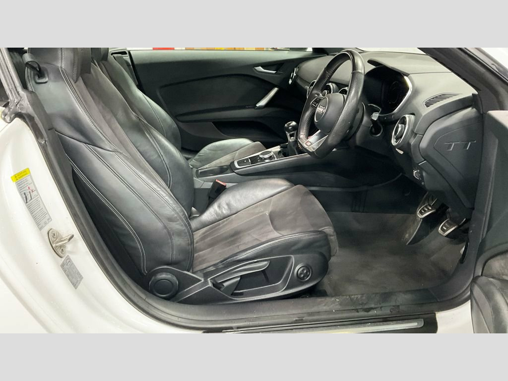**Unleash the Beast within the Beauty – Meet Your New Dream Drive!** Ever fancied sipping your morning brew on the M6 while effortlessly gliding past those poor souls stuck in the slow lane? Imagine it's a crisp morning, and you're nestled in the driver's seat of a 2016 Audi TT 1.8 TFSI S line Coupe, looking dashing in white, like a pearl among pebbles. You've got this urban champ with a personality that's ready to roar with its 1.8 TSi EURO 6 engine, boasting a cheeky 180 ps under the bonnet. This immaculate gem has seen a bit of the world with 84,359 miles under its tyres. But don't fret — it's got just enough road wisdom to know its way around the bends. With two keys to the kingdom and the careful watch of four owners past, this beauty is just waiting for its next love affair. Fancy a gander at the cockpit? You'll be greeted by an array of half leather trim, virtual cockpit navigation, and 19" alloy wheels that look good enough to eat off. Keep your cool with air conditioning as your loyal co-pilot. Fear not, it's been pampered with a part service history and comes MOT-ready to hit the road for another 12 months. All this, and it's never lost its sparkle — immaculate condition, I tell you! **Feature Recap:** - **Year:** 2016 - **Make/Model:** Audi TT 1.8 TFSI S line Coupe - **Engine:** 1.8 TSi EURO 6 (180 ps) - **Colour:** White - **Mileage:** 84,359 - **Keys:** 2 - **Owners:** 4 - **Service Hist 19in Alloy Wheels - 5-Arm Star Design, 4-Way Electric Lumbar Support for Front , ABS - Anti-Lock Braking System, AMI - Audi Music Interface, All Weather LED Headlights, Anti Theft Locking Wheel Bolts, Anti-Theft Alarm, Audi Drive Select, Audi Virtual Cockpit, Bluetooth Mobile Telephone Preparation, Cruise Control, DAB Digital Radio, Door Mirrors - Electrically Adjustable a, Door Sill Trims with S Line Logo, ESP - Electronic Stability Programme, Electric Windows - Front, Electromechanical Parking Brake, Extended Aluminium Look in Interior, First Aid Kit, Flat-Bottomed 3-Spoke Leather-Trimmed Mu, Hold Assist, Headlights - High-Beam Assist, Audi Parking System Plus - Front and Rea, Front Airbag