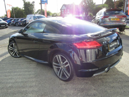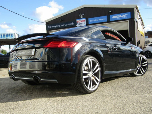 STUNNING, AUDI TT 1.8 TFSI S/LINE, COUPE, 180 BHP. Finished in BRILLIANT BLACK with Contrasting EBONY LEATHER / ALCANTARA trim. This third generation AUDI TT is a style icon that stands out in the crowd. The BRILLIANT BLACK makes it look a lot sportier that the greys, silvers and white TT's around. Features include LED day lights, 19" Alloys, DAB radio, Virtual Cockpit, Leather/alcantara, Cruise Control, Active Rear Spoiler and much more. Audi Dealer Serviced at 13331 miles, 19149 miles, 21019 miles and at 22988 miles. EMC IS A FAMILY RUN BUSINESS, EST IN 1989. OUR AIM IS TO PROVIDE A SIMPLE, EASY AND CARING BUYING EXPERIENCE. Please call JEFF or BEN to reserve this wonderful example today. Alcantara-Leather - Sport Seats - Black, 19in Alloy Wheels - 5-Twin-Spoke Design , Privacy Glass, Audi Drive Select, Audi Virtual Cockpit, DAB Digital Radio, Cruise Control, Rear Parking Sensors, S Line Body Styling, Brilliant Black, Keyless Go
