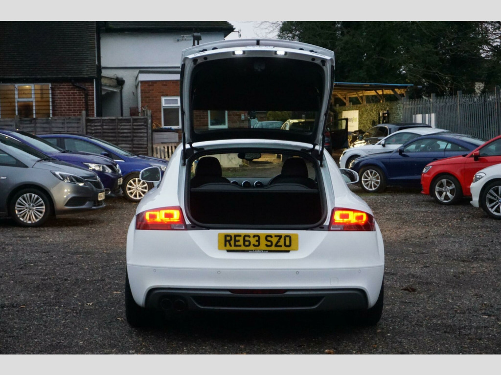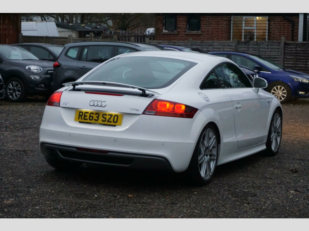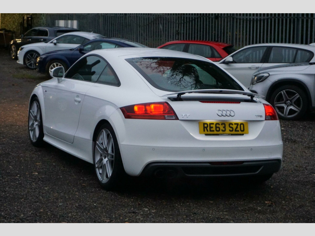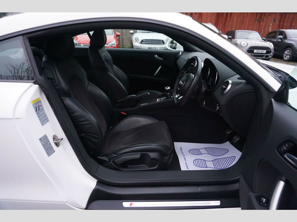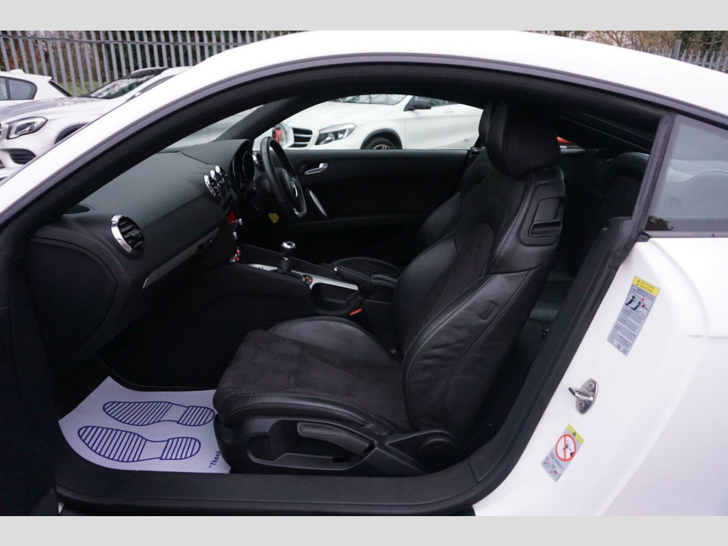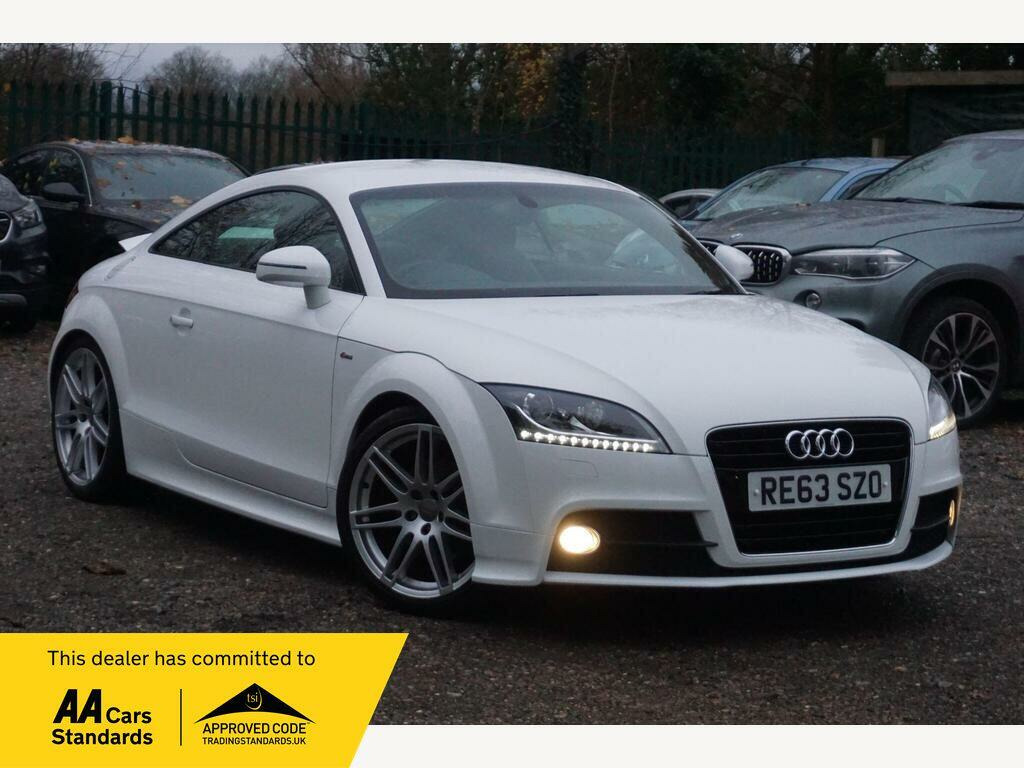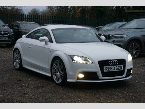 This Audi TT TFSI S line from 2013 offers a superb ownership history, having been looked after by only two previous owners. It features a responsive 1.8 litre petrol engine and comes with the desirable S line trim, enhancing its sporty appeal. For your comfort and convenience, this model is equipped with Electronic Climate Control and Bi-Xenon Plus headlights, ensuring excellent visibility in all conditions.This particular Audi TT stands out with its impressive fuel economy, achieving up to 44 miles per gallon, which is better than many similar vehicles. Furthermore, its low CO2 emissions and placement in a low insurance group indicate that running costs are kept to a minimum, making it an economical choice for discerning drivers.. 12V Power Socket, 18in Alloy Wheels - 5-Spoke Design, ABS - Anti-Lock Braking System, ASR - Anti Slip Regulation, AUX-IN Socket, Airbags - Driver, Airbags - Front Passenger, Airbags - Front Side System, Anti Theft Locking Wheel Bolts, Anti-Theft Alarm, Black Leather Centre Console Armrest Pad, Car Jack, Climate Control - Electronic, Cloth Headlining in Black, Concert Radio, Door Mirrors - Electrically Adjustable and Heated, Door Sill Trims with S Line Logo, Drivers Information System - DIS, EDL - Electronic Differential Lock, ESP - Electronic Stability Programme, Electric Windows - Front, Exhaust Tailpipe - Chrome Plated, Exhaust Tailpipe - Twin, First Aid Kit, Floor Mats, Front Fog Lights, Handbrake Grip - Black Leather, Headlights - Bi-Xenon Plus, Headlights Washers, Headlining - Black, Inlays - Matt Brushed Aluminium, LED Daytime Running Lights, MP3 File Compatibility, Power Steering - Electromechanical/Servotronic Speed Sensitive, Remote Central Locking, S Line Design Front and Rear Bumpers Side Grilles and Dffusers in Platinum Grey, S Line Suspension, Seats - Drivers Manual Height Adjustment, Seats - Front Sports - S Line Embossed, Speakers - Active Front and Rear, Split-Folding Rear Seats, Spoiler - Retractable, Steering Wheel - 3-Spoke Leather - Multi-function - Sports, Steering Wheel - Height and Reach Adjustable, Steering Wheel - Multi-function, Styling Package - S line Exterior, Tool Kit, Traction Control, Tyre Mobility System, Warning Triangle, ISOFIX Child Seat Mounting for Rear Seats, 19in Alloy Wheels - 20-Spoke Design - 2-Piece, Alcantara - Leather - Sports Seats - Black with Jet Grey Stitching. Full service history