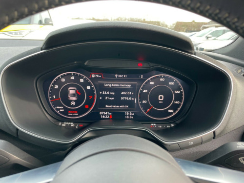 This 2016 Audi TT TFSI S line offers a compelling blend of style and technology. Powered by a 1.8 litre Euro 6 compliant petrol engine, this S line trim model is equipped with All Weather LED headlights, including automatic activation via a light sensor. Inside, you'll find convenient features such as air conditioning and Bluetooth connectivity for both audio streaming and mobile telephone preparation, ensuring a comfortable and connected driving experience.With a fuel economy of 47 miles per gallon, this Audi TT demonstrates efficiency that stands out amongst similar vehicles. Its low CO2 emissions further highlight its considerate environmental performance. This combination of a refined driving experience, modern features, and economic benefits makes the 2016 Audi TT TFSI S line a noteworthy choice.. 12V Power Socket, 19in Alloy Wheels - 5-Arm Star Design, 2 x SDXC Card Readers, ABS - Anti-Lock Braking System, AMI - Audi Music Interface, Air Conditioning, Airbags - Driver, Airbags - Front Passenger, Airbags - Front Side System, Airbags - Head System, All Weather LED Headlights, Anti Theft Locking Wheel Bolts, Anti-Theft Alarm, Audi Drive Select, Audi Virtual Cockpit - 12.3in High Resolution LCD Display, Automatic Wipers with Rain Sensor, Bluetooth Audio Streaming, Body Coloured Door Mirrors, Brake Lights - LED, Bumpers - Front and Rear - S Line Design, Car Jack, DAB Digital Radio, Diffuser - Rear - Platinum Grey Insert - S Line Design, Door Mirrors - Built-in LED Side Indicators, Door Mirrors - Electrically Adjustable and Heated, Door Sill Trims, Door Sill Trims with S Line Logo, Door Trim Inserts - Alcantara, Dynamic LED Indicators - Rear, ESP - Electronic Stability Programme, Electric Windows - Front, Electrically Adjustable 4-Way Lumbar Support, Electromechanical Parking Brake, Extended Aluminium Look in Interior, FM-AM Radio, First Aid Kit, Front Passenger Airbag Deactivation Switch, Front Sports Seats, Fuel Computer, Gear Knob - Perforated Leather Black, Gear Knob - Silver Stitching, Google Earth Images and Google Street View, Headlights - Automatic Range Adjustment, Headlights - Coming-Leaving Home Function, Headlights - Light Sensor, Headlights Washers, Headlining - Black, ISOFIX Child Seat Mounting for Front Passenger, ISOFIX Child Seat Preparation for Rear Seats with Top Tether, Inlays - Matt Brushed Aluminium, Integrated Head Restraints, Keyless Go, LED Daytime Running Lights, LED Rear Lights, Light and Rain Sensor Package, MMI Radio, MMI Touch, Manual Front Seat Adjustment, Mobile Telephone Preparation - Bluetooth Interface, Non-Smoking Package, Pedals in Stainless Steel, Pollen Filter, Progressive Steering, Radiator Grille - High Gloss Black, Remote Central Locking, S Line Badge on the Steering Wheel, S Line Badges on the Front Wings, S Line Body Styling, Seat - Side Bolsters in Leather, Seats - Constrasting Silver Stitching on Upholstery, Side Sills - S Line, Speakers x4 - Front Passive, Split-Folding Rear Seats, Spoiler - Retractable, Steering Wheel - 3-Spoke Leather-Multifunction-Flat Bottomed, Steering Wheel - Height and Reach Adjustable, Steering Wheel - Multi-function, Steering Wheel - Silver Contrast Stitching, Steering Wheel - Sports, Sunband for Windscreen, TP Memo - Automatically Saves Traffic News, Tool Kit, Traction Control, Tyre Pressure Loss Indicator, Tyre Repair Kit, USB Connection, Warning Triangle, iPod Connection. Part service history