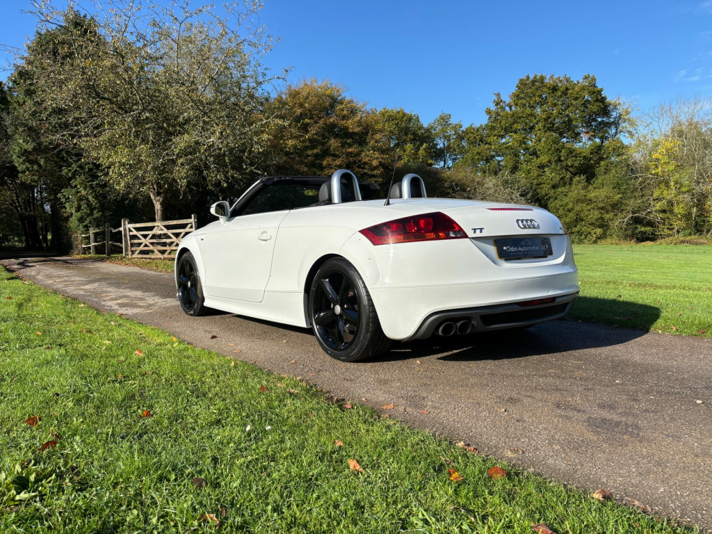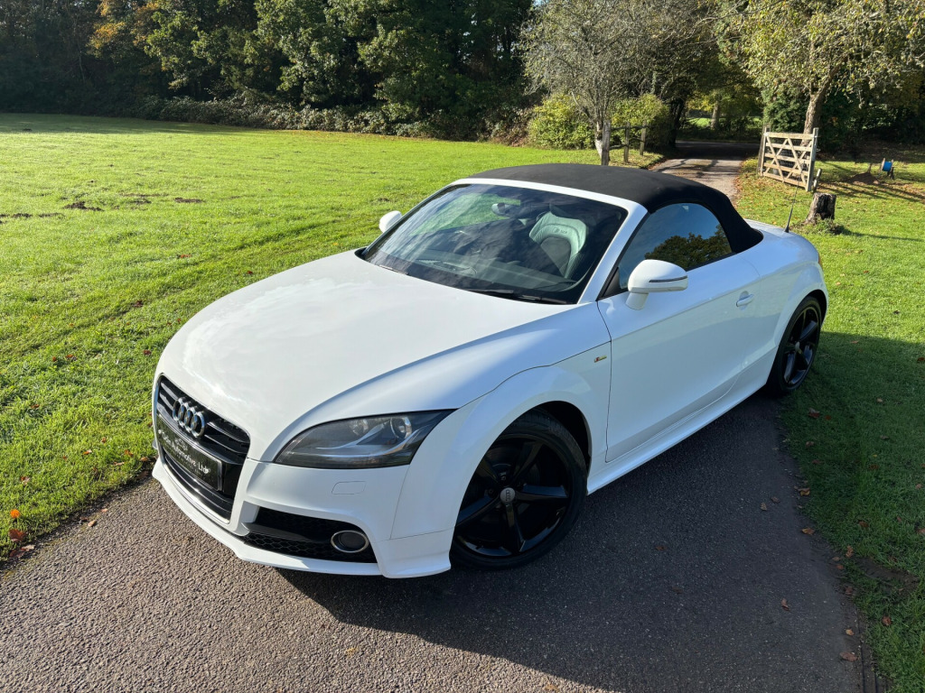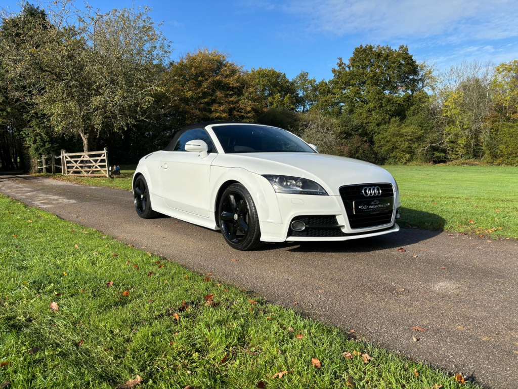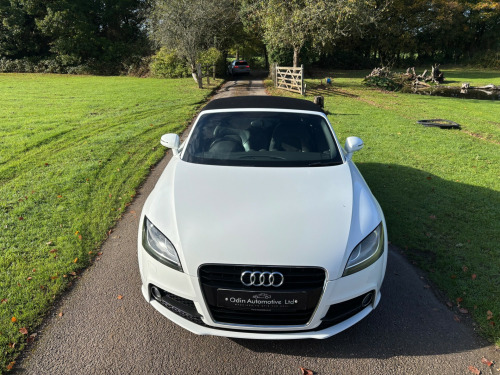 Odin Automotive are pleased to present this gorgeous Audi TT cabriolet finished in striking White non-metallic with a contrasting Black leather & alcantara interior. We took this 3 owner example in part exchange and it is offered for sale with service history, original book pack and 2 remote keys.Spec-wise this TT has some great options including an electrically retracting wind deflector, Bluetooth telephone connectivity and electric heated door mirrors. Outside there are 18'' S-line alloys - recently refurbished in gloss black and Xenon headlights.As with all of our cars this Audi will undergo a thorough Pre Delivery Inspection, has been recently serviced and will be sold with a new MOT. We also include a 12 month Bluechip parts & labour warranty for total peace of mind.We welcome part exchanges and would like to make all of our customers aware that we operate strictly by appointment only, so please do get in touch ahead of planning your visit to us., v power socket, aux-in socket, concert radio, 18in alloy wheels - 5-spoke design, door mirrors - electrically adjustable and heated, electric windows - front, fully automatic electrically operated soft top, tyre mobility system, abs - anti-lock braking system, asr - anti slip regulation, airbags - driver, airbags - front passenger, airbags - front side system, anti-theft alarm, esp - electronic stability programme, isofix child seat mounting for front passenger with airbag deactivation, remote central locking, roll-over protection bars, climate control - electronic, cloth headlining in black, inlays - matt brushed aluminium, seats - drivers manual height adjustment, steering wheel - 3-spoke leather - multi-function - sports, steering wheel - height and reach adjustable, steering wheel - multi-function, drivers information system - dis, power steering - electromechanical/servotronic speed sensitive, s line suspension, suspension - s line, front fog lights, headlights - bi-xenon plus, headlights washers