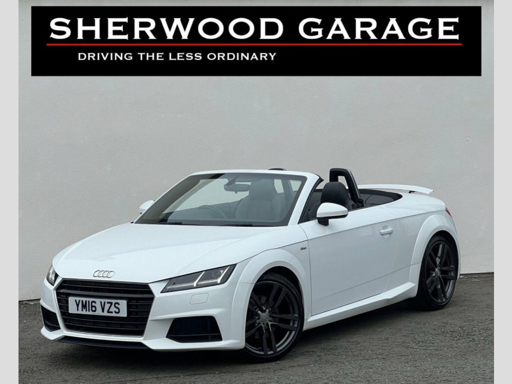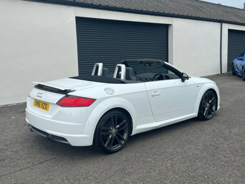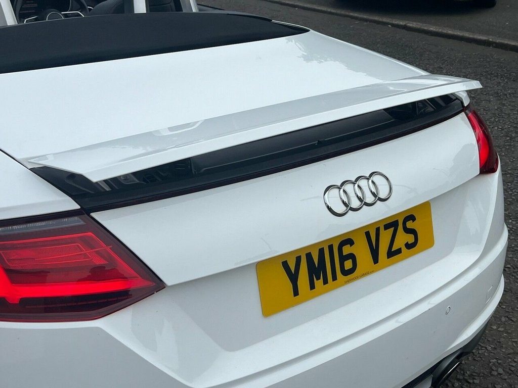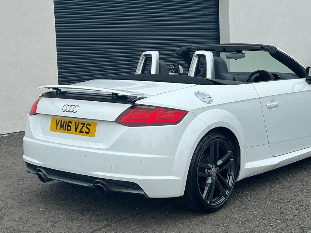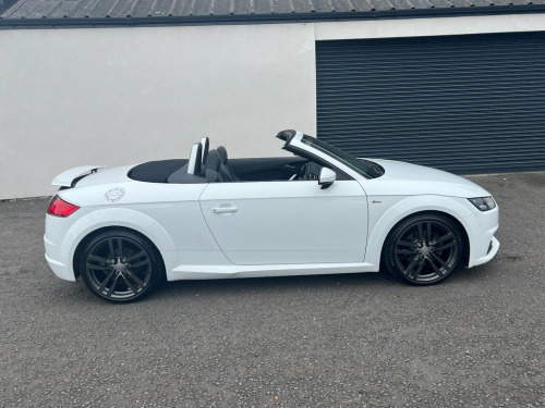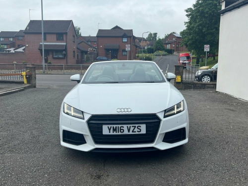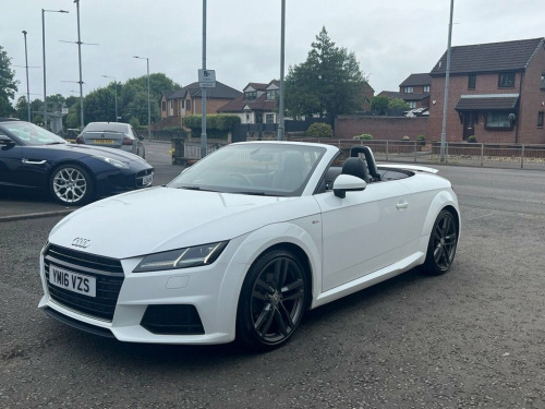 Here we have a lovely 2016  Audi TT 1.8 TFSi S Line Roadster Manual 180 bhp in White with Black Half Leather/Alcantara Interior . The TT has only covered 96000 miles. Options include Bluetooth ,  Air Conditioning , Sports Seats , MFSW, Colour Coded Mirrors , Privacy Glass , Rear Electric Spolier , ABS and 19"  Satin Effect Alloys . The car will benefit from our Triple RAC Package including 12 Months RAC Roadside Assistance and our 82 Point RAC Check . Give us a ring today on 01417781692 to enquire or secure asking for Graeme or Gary 19in Alloy Wheels - 5-Arm Star Design, 4-Way Electric Lumbar Support for Front , ABS - Anti-Lock Braking System, All Weather LED Headlights, AMI - Audi Music Interface, Anti Theft Locking Wheel Bolts, Anti-Theft Alarm, Audi Drive Select, Audi Virtual Cockpit, Black Hood, Bluetooth Mobile Telephone Preparation, Cruise Control, DAB Digital Radio, Door Mirrors - Electrically Adjustable a, Door Sill Trims with S Line Logo, Electric Windows - Front, Electromechanical Parking Brake, ESP - Electronic Stability Programme, Extended Aluminium Look in Interior, First Aid Kit, Flat-Bottomed 3-Spoke Leather-Trimmed Mu, Front Airbags with Front Passenger Deact, Front Centre Armrest, Front Sports Seats, Fu
