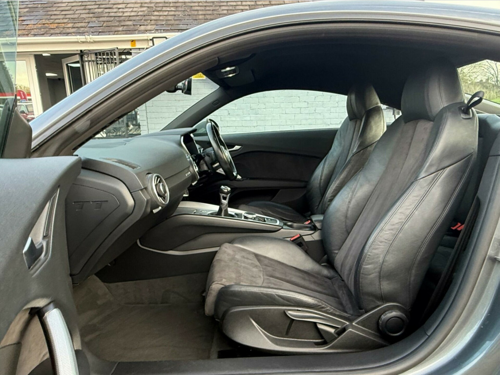 This 2016 Audi TT TFSI Sport is a remarkable find, having been cherished by only two owners since new. This stylish coupe boasts a 1.8 litre petrol engine, meeting the Euro 6 emission standards for cleaner driving. Inside, you'll appreciate the convenience of Bluetooth audio streaming and a dedicated mobile telephone preparation with a Bluetooth interface, keeping you connected on the go. The Xenon Light Package ensures excellent visibility, while the air conditioning provides a comfortable cabin environment whatever the weather.With an impressive fuel economy of 47 miles per gallon, this Audi TT TFSI Sport offers an economical driving experience. Its low CO2 emissions also indicate a more environmentally conscious choice compared to many other vehicles in its class. This combination of efficient performance, desirable features, and excellent provenance makes this particular Audi TT a compelling option for discerning drivers. chnology package, 12v power socket, 18in alloy wheels - 10-spoke design, 2 x sdxc card readers, abs - anti-lock braking system, ami - audi music interface, air conditioning, airbags - driver, airbags - front passenger, airbags - front side system, airbags - head system, anti theft locking wheel bolts, anti-theft alarm, audi drive select, audi virtual cockpit - 12.3in high resolution lcd display, bluetooth audio streaming, body coloured door mirrors, brake lights - led, car jack, dab digital radio, door mirrors - built-in led side indicators, door mirrors - electrically adjustable and heated, door sill trims, door trim inserts - alcantara, esp - electronic stability programme, electric windows - front, electromechanical parking brake, fm-am radio, first aid kit, front passenger airbag deactivation switch, front sports seats, fuel computer, google earth images and google street view, headlights - automatic range adjustment, headlights washers, headlining - black, isofix child seat mounting for front passenger, isofix child seat preparation for rear seats with top tether, inlays - aluminium drift silver, integrated head restraints, keyless go, led daytime running lights, led rear indicators, led rear lights, mmi radio, mmi touch, manual front seat adjustment, mobile telephone preparation - bluetooth interface, non-smoking package, pollen filter, progressive steering, remote central locking, seat - side bolsters in leather, speakers x4 - front passive, split-folding rear seats, spoiler - retractable, steering wheel - 3-spoke leather-multifunction-flat bottomed, steering wheel - height and reach adjustable, steering wheel - multi-function, steering wheel - sports, sunband for windscreen, tp memo - automatically saves traffic news, tool kit, traction control, tyre pressure loss indicator, tyre repair kit, usb connection, warning triangle, xenon light package, ipod connection