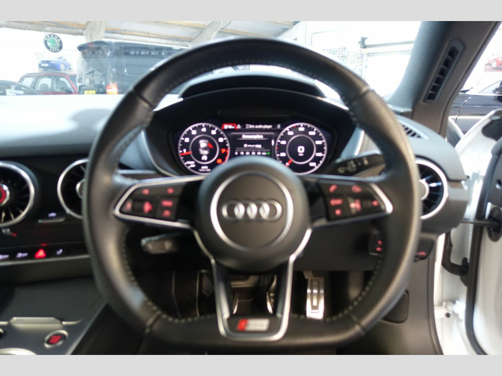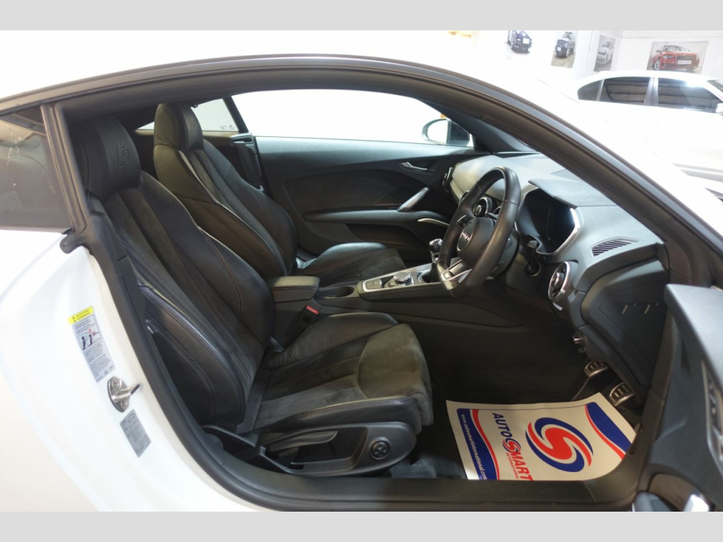 To avoid disappointment viewing is strictly by appointment only Presented in white with contrasting unmarked half leather interior only 19989 miles from new backed up by a audi service history only 1 previous owner current mature lady owner for the past 3 1/2 years we have all the owners manuals and hand books 2 keys hpi clear part exchange possible finance arranged warranty will be supplied with 12 months mot features on this vehicle include unmarked heated half leather alcantara interior heated seats blue tooth audio streaming active lane assit bang and olufsen advance sound system dab radio virtual dash 3 spoke multifunction leather steering wheel cruise control progressive power steering front centre arm rest keyless start air con rain and light sensors audi music interface audi drive select all weather led headlights unmarked 19inch diamond cut alloy wheels with matching bridge stone tyres all round tyre presseure warning black pack styling pack privacy glass active rear spoiler parking sensors must be viewed this is a very well cared for example Dubbers Sports established 2002 and proud members of the good garage scheme
