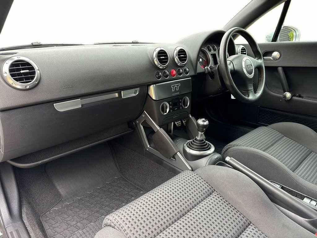 Audi TT 1.8T (150) Roadster. 2003/63. A unique opportunity to acquire what is possibly the best Audi TT of its kind currently for sale. First Registered in September 2003 by Hadwins Audi Cumbria this Audi remained in the same ownership until February 2025 when it was then purchased by its second owner to date. Finished in Brilliant Avus Silver with Black/Grey Cloth Sports Interior this vehicle has covered a staggering 23k Miles from new with an incredible service portfolio to support, all service invoices and receipts are stored in a huge history file. This vehicle has clearly been cherished from new and garage stored as this is very reflective in the overall appearance, the original black soft top still presents itself in as new condition. Everything is totally original, including the original Audi Radio/Cassette player still fitted along with two sets of over mats. Four Pirelli Tyres have been recently fitted. A fantastic opportunity for the collector/enthusiast and a sound investment which is not to be confused with other higher mileage/ownership for sale, this is the best example currently on offer. Two Keys (One unused) Audi Book Pack. Nationwide Delivery Direct to your chosen destination. Further information available on request. Avus Silver, Metallic Paint, Adjustable Steering Column/Wheel, Air Bag Driver, Air Bag Passenger, Air Bag Side, Alloy Wheels (16in), Anti-Lock Brakes, Body Coloured Bumpers, Central Door Locking, Climate Control, Computer (Driver Information System), Electric Windows (Front), Electronic Stability Programme, Front Fog Lights, Head Air Bags, Head Restraints, Immobiliser, In Car Entertainment (Radio/Cassette), Mirrors External, Power-Assisted Steering, Seat Height Adjustment, Spare Wheel (Space Saver), Speakers, Traction Control System, Upholstery Cloth