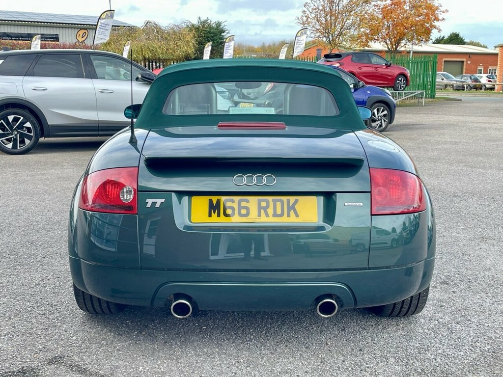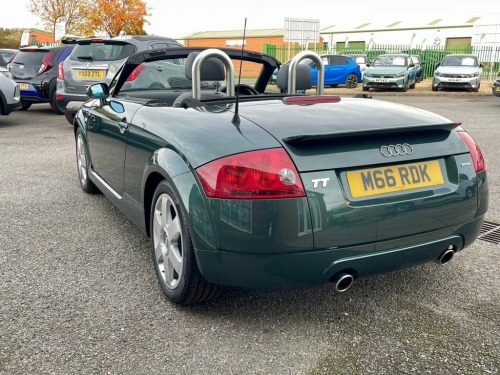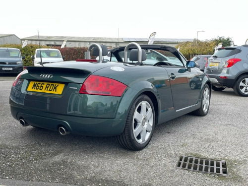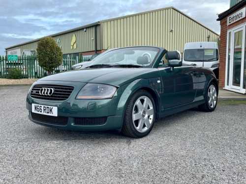 Woldside Classic and Sports Car is pleased to offer this exceptional 2001 Audi TT Roadster 1.8T quattro, finished in the rare and highly desirable Goodwood Green. The paintwork remains in fabulous condition, beautifully complemented by a green soft top in fabulous condition. This example has covered just 59,043 miles and benefits from a recent full service, including new brakes and professional undersealing to preserve the underside. It sits on newly refurbished 17-inch silver 6-spoke alloy wheels, matched with brand-new Pirelli tyres for confident handling and a sharp visual finish. Inside, you'll find full grey leather seats in excellent condition, paired with matching grey carpets throughout. The factory radio remains in good working order, and the car is equipped with a range of desirable factory options including heated seats, a premium BOSE sound system, and an electrically operated glass wind deflector. Powered by a 1.8-litre turbocharged petrol engine producing 225 bhp and mated to a six-speed manual gearbox with quattro all-wheel drive, this TT delivers engaging performance and timeless style. CO? emissions are rated at 228 g/km. Supplied with two original keys and its original books, this TT Roadster represents a rare opportunity to own a well-preserved, low-mileage example of Audi's iconic open-top sports car. Available now at Woldside Classic and Sports Car. Please contact us for further details or to arrange a viewing. 7.5Jx17 6 Spoke Alloy Wheels with 225/45, Adjustable Steering Column/Wheel, Air Bag Driver, Air Bag Passenger, Air Bag Side, Alloy Wheels (17in), Anti-Lock Brakes, Body Coloured Bumpers, Central Door Locking, Climate Control, Computer, Driver's Information System, Electric Windows (Front), Front Fog Lights, Head Restraints, Headlamp Washers, Immobiliser, In Car Entertainment (Radio/Cassette), Mirrors External, Power-Assisted Steering, Seat Height Adjustment, Seats Heated (Driver), Spare Wheel (Space Saver), Traction Control System, Xenon Headlights