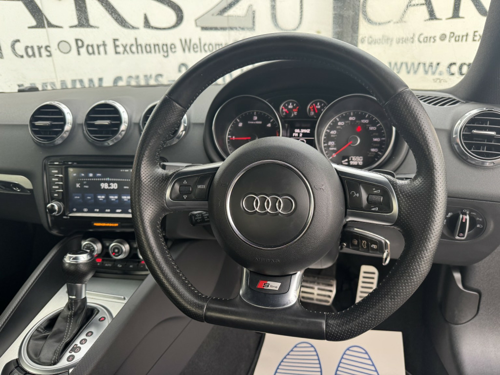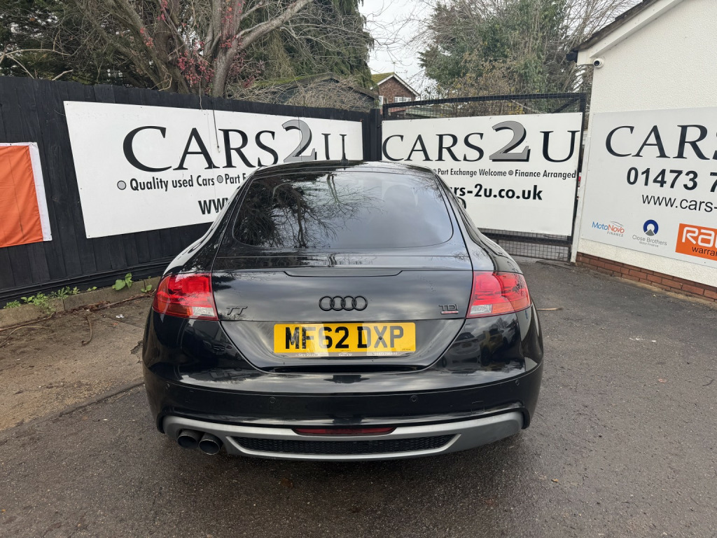 Cars2u - Quality Used Cars with a Personal Touch, , Established in 2012, Cars2u is a family-run business dedicated to providing quality used vehicles with a friendly ,no-pressure approach. Conveniently located on the outskirts of Ipswich, we have excellent transport links via the A12 and A14 and are just a 10 minute drive from Ipswich train station. , At Cars2u , every vehicle we sell is HPI clear and undergoes a full inspection to ensure it meets our high standards .For added peace of mind ,all cars come with an RAC warranty. We also offer finance options ,part exchange and nationwide delivery, making it easier than ever to find your perfect car. , Our focus is on customer satisfaction, providing a relaxed and professional service without the pressure of a hard sell. whether youre looking for your next car or simply exploring your options were here to help. , Visit Cars2u today and experience a stress-free way to buy a car. , WE ARE VERY PLEASED TO OFFER THIS VERY GOOD LOOKING VERY CLEAN 2012 62 AUDI TT 2.0 TDI QUATTRO BLACK EDITION AUTOMATIC, GOOD SPEC ,SHE HAS COVERED A MEAR 99,000 MILES FROM NEW HAS A GOOD SERVICE RECORD ,SHE WILL BE SERVICED WHEN SOLD AS WELL AS A CURRENT MOT UNTILL 11/2026 AND WILL COME WITH A 3 MONTH RAC WARRANTY FOR HER NEW OWNERS COMPLETE PEACE OF MIND
