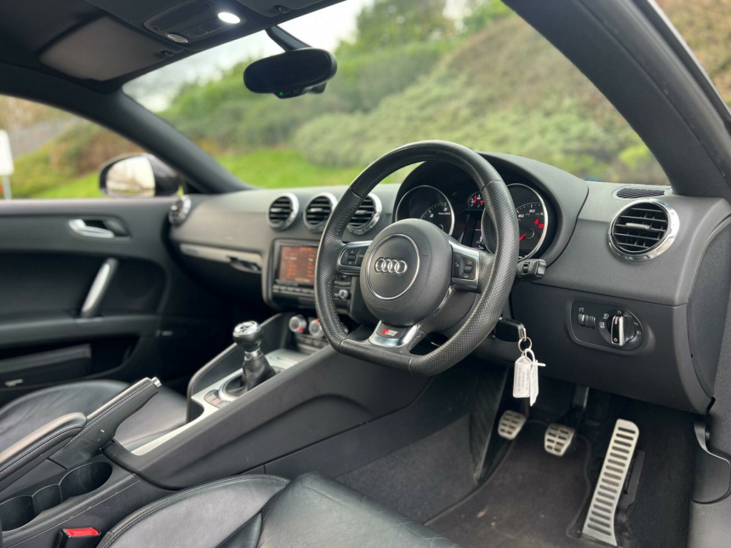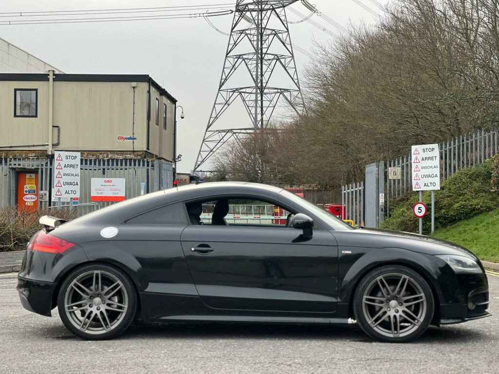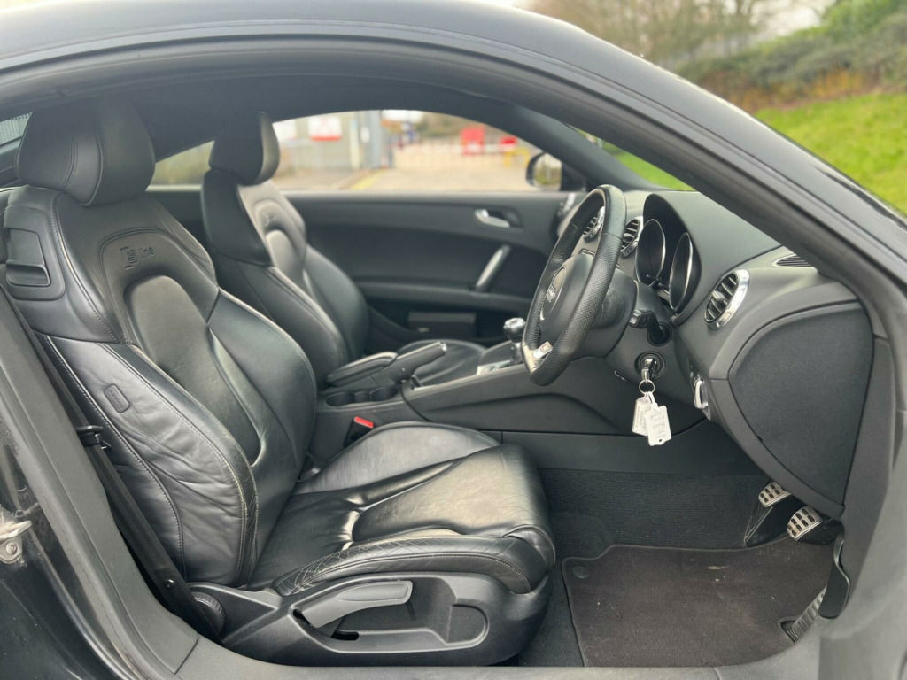 2011 Audi TT 2.0 TDI Black Edition quattro Euro 5 3dr in Black. Only 67000 warranted miles on the clock. Car comes with a 12 Month Warranty!!! MOT till 14th June 2026. Only 2 previous owners from new. Service History Available: 6 Services 3 Main Dealer. Car starts and drives well with no mechanical faults. Full V5 Available. Good spec including: Sat Nav, Leather Seats, Leather Steering Wheel, CD/Radio/AUX, Bluetooth, AC/Climate Control, Xenon Headlights, Electric Windows, Electric Mirrors, Alloy Wheels, Cruise Control, Parking Sensors, Privacy Glass, Central Locking and many more. Nationwide Delivery Available. P/X Welcome. HPI Clear. 2 Keys. Any questions don't hesitate to contact us on 07443456706. Whatsapp available as well ack headlining, bluetooth interface for handsfree telephone, front passenger airbag deactivation, front passenger seat isofix location point, front sports seats, front floor mats, height adjust front seats, s line sports suspension, ipod connection