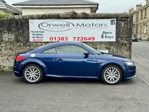 Here at Orwell Motors we are delighted to offer for sale this very nice example Audi TT 2.0 TDI S-Line S-Tronic Quattro finished in Scuba Blue Metallic with contrasting Full Black Leather Interior. This car comes with a Full Audi Main Dealer Service History and 2 Keys supplied. Spec for this car includes Automatic Climate Control, Cruise Control, Digital Cockpit Display, Heated Seats, DAB Radio with Media Connectivity, Automatic Lights, Flat Bottomed Multi-Function Steering Wheel and Bluetooth. Fine Nappa Leather - Super Sport Seats -, Heated Front Seats, Scuba Blue, Comfort and Sound Package, 12V Socket, 19in Alloy Wheels - 5-Arm Star Design, 4-Way Electric Lumbar Support for Front , ABS - Anti-Lock Braking System, AMI - Audi Music Interface, All Weather LED Headlights, Anti Theft Locking Wheel Bolts, Anti-Theft Alarm, Audi Drive Select, Audi Virtual Cockpit, Auto-Dimming Rear-View Mirror, Bluetooth Mobile Telephone Preparation, Body Coloured Door Mirrors, Cruise Control, DAB Digital Radio, Door Mirrors - Electrically Adjustable a, Door Sill Trims with S Line Logo, Electric Windows - Front, Electromechanical Parking Brake, Email - Calendar and Text Messages can b, Extended Alumini