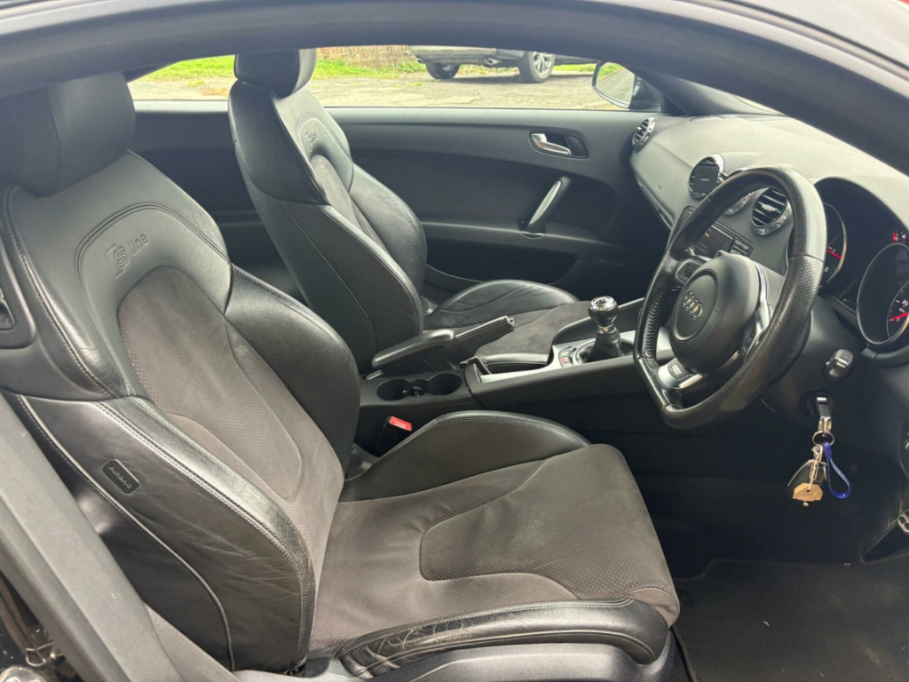 This 2010 Audi TT TDI S line Special Edition offers a compelling blend of performance and technology. Featuring a robust 2.0 litre diesel engine paired with four wheel drive, this model ensures confident handling in various conditions. The S line Special Edition trim enhances its sporty appeal, while practical features such as DVD Satellite Navigation, Bluetooth telephone preparation, and cruise control add to the driving experience. A USB connection is also included for your convenience.The sports suspension fitted to this Audi TT provides a more engaging and dynamic drive, setting it apart from other vehicles in its class. This, combined with the efficient diesel engine and the advanced four wheel drive system, makes it a well rounded choice for those seeking both style and substance. The inclusion of premium features like the DVD SatNav and Bluetooth connectivity further elevates its appeal, offering a sophisticated and connected journey.Px welcome Free delivery within 40 miles in 5 segment spoke design alloy wheels, 19in 7 twin spoke design alloy wheels, 19in 7 twin- spoke titanium look design alloy wheels, bluetooth interface for handsfree telephone, front passenger airbag deactivation, front passenger seat isofix location point, front sports seats, front floor mats, height adjust front seats, radio & cd & mp3, s line sports suspension, scuff plates with metal inlays, 6cd autochanger- glovebox, cruise control, bluetooth telephone preparation, dvd satnav plus, satnav, usb connection, tyre pressure monitoring system, privacy glass, leather & alcantara-, sports suspension