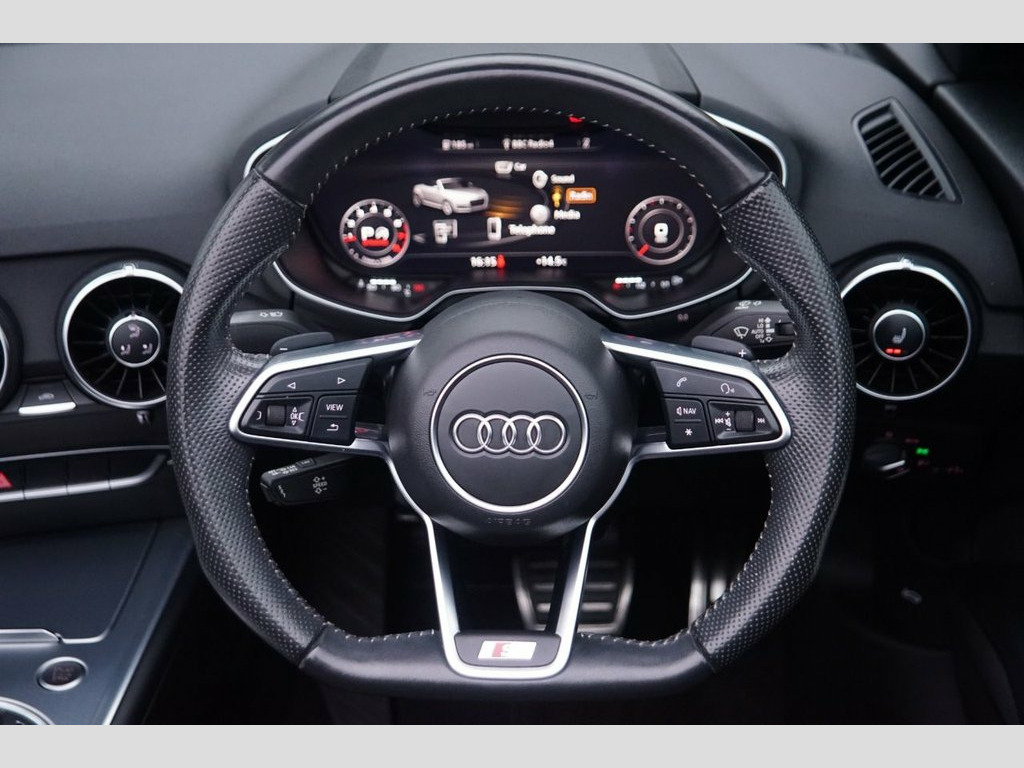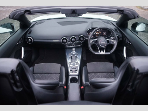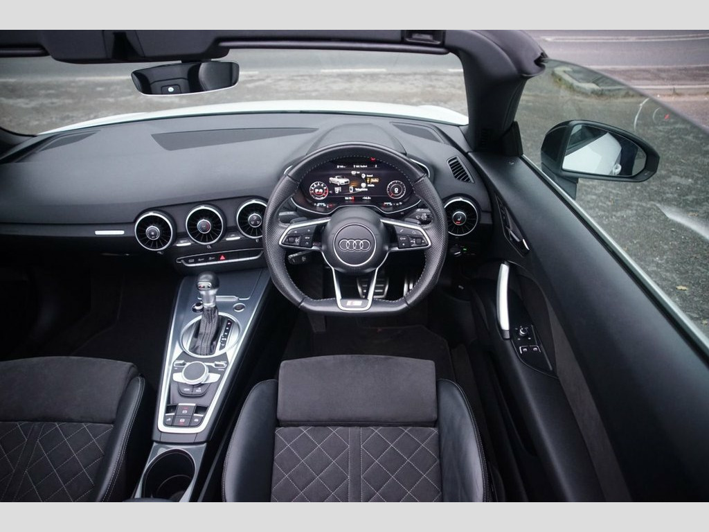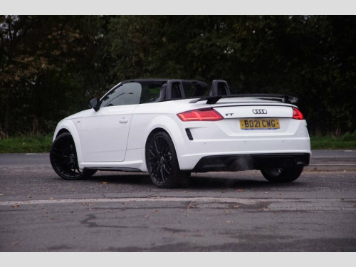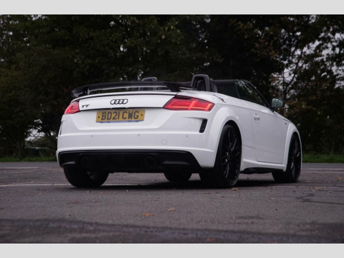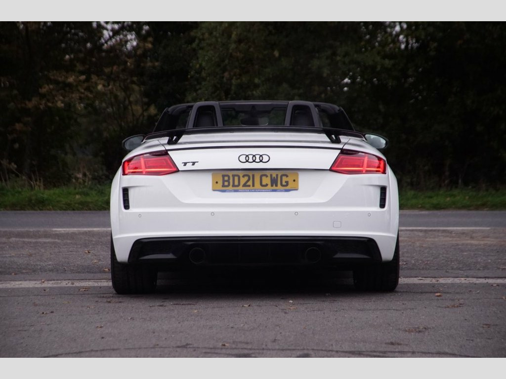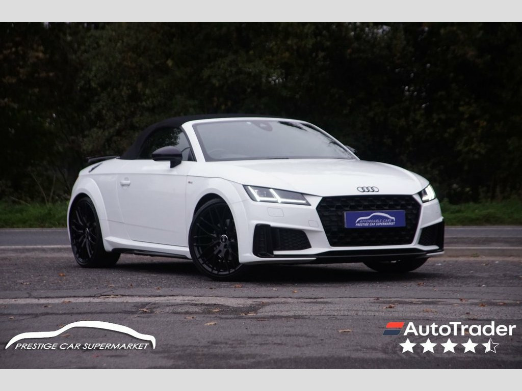 Prestige Car Supermarket in York presents this stunning and highly desirable 2021 Audi TT 2.0 TFSI 40 Black Edition Roadster. Finished in Ibis White non-metallic paintwork and featuring a contrast Black Roof, this automatic petrol convertible offers a thrilling and engaging open-top driving experience. It boasts a sporting Black Alcantara-Leather Super Sport Seats interior with S Embossed Logo detailing. It rides on upgraded 20in 10-Y Spoke Design Gloss Black alloy wheels with a Diamond Cut finish and features the Black Styling Package, Black Door Mirrors, and Black Chrome Tailpipes, which enhance its aggressive aesthetic. Illumination is provided by LED Headlights with LED Rear Lights and Dynamic Rear Indicators. Step inside the highly appointed cabin to find a Flat-Bottomed 3-Spoke Leather-Trimmed Multi-Function Sport Steering Wheel, Heated Front Seats with 4-Way Electric Lumbar Support, and a Fully Automatic Electrically Operated Acoustic Hood. Technology is comprehensive with the Audi Virtual Cockpit, Audi Smartphone Interface, Bluetooth Mobile Telephone Preparation, and DAB Digital Radio. Convenience is a priority with Keyless Go, Rear Parking Sensors, Auto-Dimming Rear-View Mirror, Electrically Folding Door Mirrors, and a Wind Deflector. Safety and driver assistance systems are extensive, including S Line Sports Suspension lowered by 10mm, Roll-Over Protection Bars, and Hill Hold Assist, ensuring a secure and confident drive. Black Roof Colour, Alcantara-Leather - Super Sport Seats - , Ibis White, 12V Socket, 20in Alloy Wheels - 10-Y Spoke Design in, 4-Way Electric Lumbar Support for Front , Anti Theft Locking Wheel Bolts, Anti-Theft Alarm, Audi Drive Select, Audi Smartphone Interface, Audi Virtual Cockpit, Auto-Dimming Rear-View Mirror, Black Chrome Tailpipes, Black Door Mirrors, Black Styling Package, Bluetooth Mobile Telephone Preparation, Cruise Control, DAB Digital Radio, Door Mirrors - Electrically Folding, Door Sill Trims with S Line Logo, ESC - Electronic Stabilisation Control i, Electric Windows - Front, Electromechanical Parking Brake, Extended Aluminium Look in Interior, Fixed Rear Spoiler, Flat-Bottom