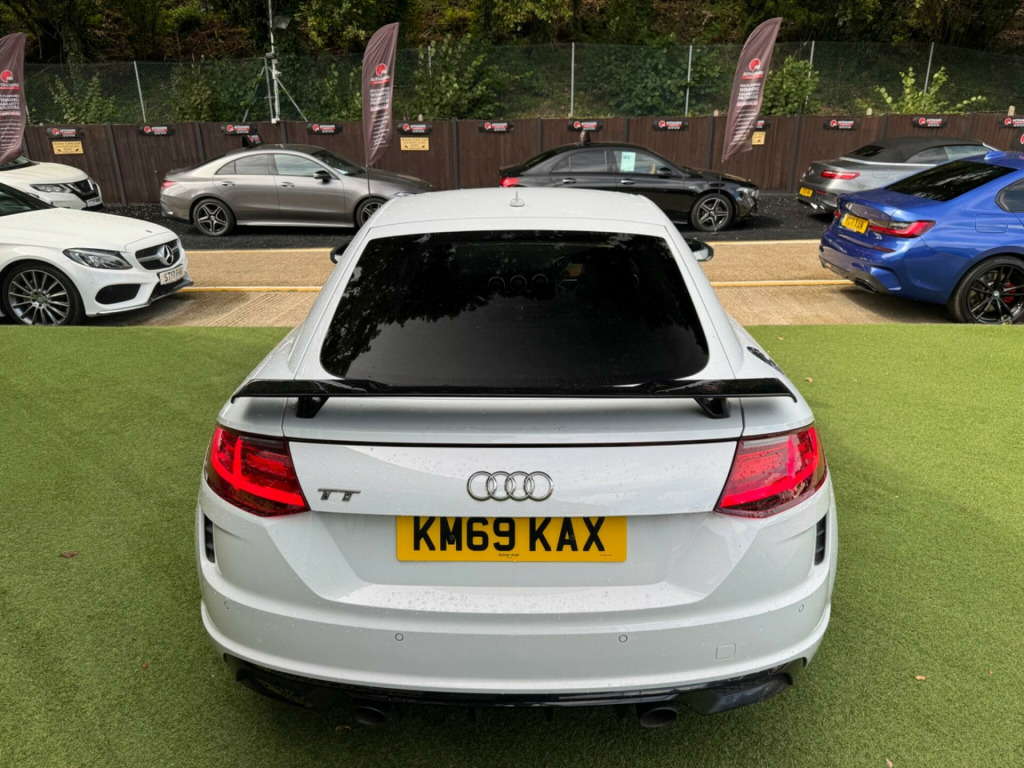 6 months or 12 months warranty available on this car. Finance available subject to status. One Former KeeperCruise Control & Speed LimiterRear Parking SensorsSat NavDAB/FM RadioWireless ChargerAudi ConnectDrive SelectHeated Front SeatsAir ConTwin Black ExhaustsVirtual CockpitFlappy PaddlesFixed Gloss Back Rear Spoiler20'' Gloss Black - Machined Lip AlloysSide SkirtsIsofixStop StartRear DiffuserRemote Central LockingAuto XenonsPush Button StartAuto HoldTraction ControlImmobiliserAlarm16VTwin Air BagsSide Air BagsPASOn Board Trip ComputerRear HeadrestsAuto WipersElectric Front WindowsHeadlamp WashersCup HoldersElectric Folding & Heated MirrorsChain No CambeltUsb x 2Aux InBlack Super Sport Leather/Alcantara Seats With Grey Stitching This 2019 Audi TT TFSI Black Edition is a standout choice, and boasting a remarkably low mileage of just 36,921 miles for its age. Under the bonnet, you'll find a responsive 2.0 litre petrol engine, compliant with Euro 6 emissions standards. This Black Edition model comes equipped with desirable features such as manual air conditioning to keep you comfortable, heated front seats for those cooler days, and rear parking sensors to aid with manoeuvring. Connectivity is also a breeze thanks to Bluetooth mobile telephone preparation, and the light and rain sensor system automatically manages your headlights, ensuring optimal visibility.This particular Audi TT TFSI Black Edition offers excellent running costs, achieving an impressive fuel economy of 41 miles per gallon, which is a significant advantage over many similar vehicles. Its low CO2 emissions further contribute to its appeal. These highlights demonstrate that this Audi TT is not only stylish and well equipped but also an economical and practical choice for everyday driving. cantara-leather - super sport seats - s embossed logo - black, exterior mirrors - electrically adjustable - heated and folding - automatically dimming on both sides - including automatic kerb-side function for the passenger-side, technology package, one former keeper, cruise control & speed limiter, rear parking sensors, sat nav, dab/fm radio, wireless charger, audi connect, drive select, heated front seats, air con, twin black exhausts, virtual cockpit, flappy paddles, fixed gloss back rear spoiler, 20'' gloss black - machined lip alloys, side skirts, isofix, stop start, rear diffuser, remote central locking, auto xenons, push button start, auto hold, traction control, immobiliser, alarm, 16v, twin air bags, side air bags, pas, on board trip computer, rear headrests, auto wipers, electric front windows, headlamp washers, cup holders, electric folding & heated mirrors, chain no cambelt, usb x 2, aux in, black super sport leather/alcantara seats with grey stitching