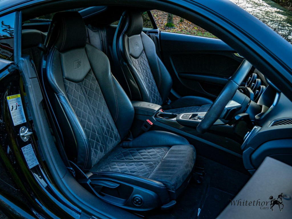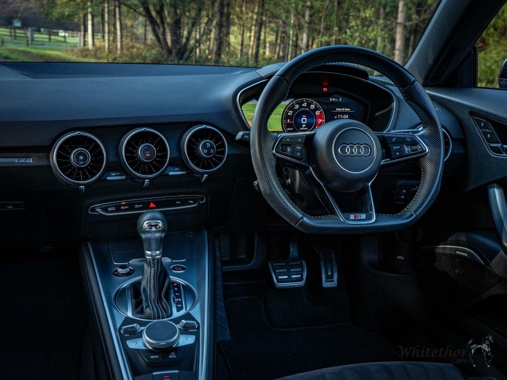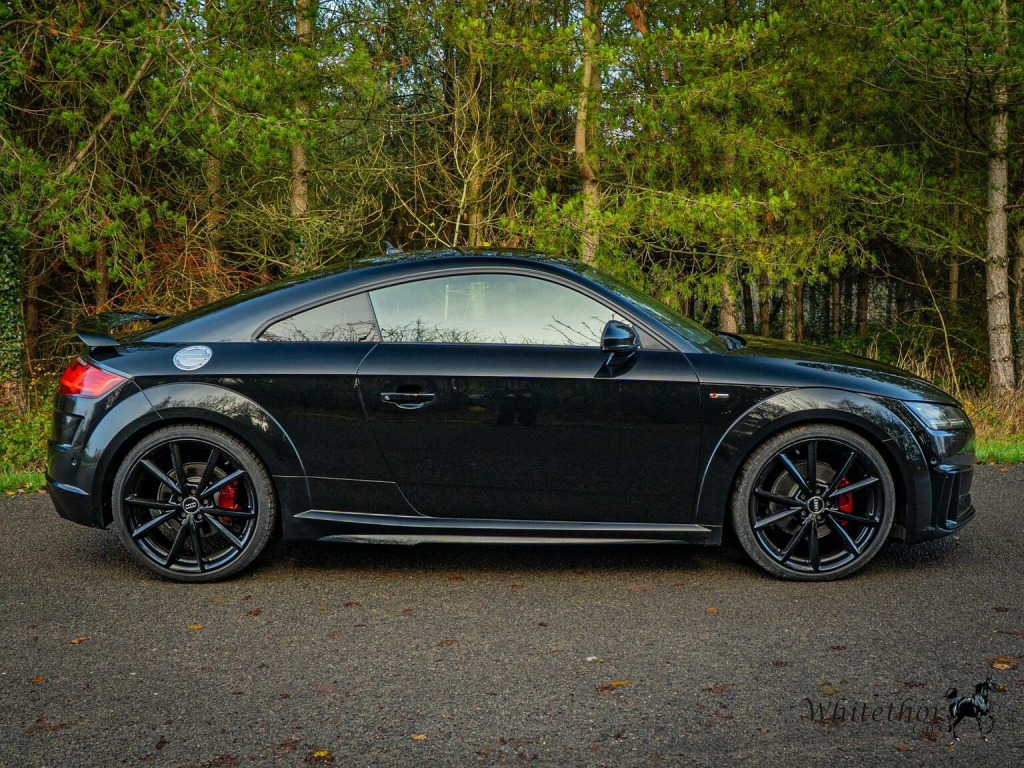 FREE DELIVERY WITHIN 200 MILES – Here we have a stunning Audi TT Black Edition finished in Black Metallic. This being the Black Edition comes with fantastic spec from the factory, but this example also boasts a plethora of added optional extras such as: 20in 5-V Spoke Design Alloy Wheels – Alcantara/Leather Super Sport Seats with S Embossed Logo in Black with Dark Silver Stitching – Comfort and Sound Package – Technology Package – Audi Parking System Plus – Park Assist – and more. This car has had 4 services in total (3 Audi, 1 Independent) last carried out at x miles. The MOT expires November 2026. 3 Month £2000 Claim Limit Warranty is included with the sale but the option to upgrade to a 12M, 24M, & 36M £5000 Claim Limit Nation Wide Premium Autoguard Warranty with Breakdown Cover is available. Multiple Finance Options, Competitive Part Exchange Prices. All Cars Are HPI, MotorCheck & Experian Clear. Further Vehicle Delivery Options Also Available. All Rights Reserved - Whitethor cars exercise all reasonable care and skill in providing you with vehicle information and data. The specification is attained through HPI, Experian & Autotrader VRM. Options Sold as packs may be shown individually, spec check is a guide so please contact us or physically verify any info that is crucial.