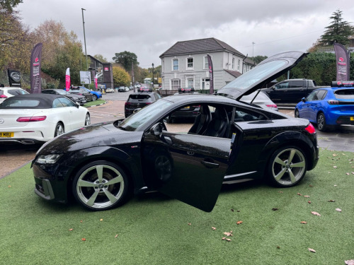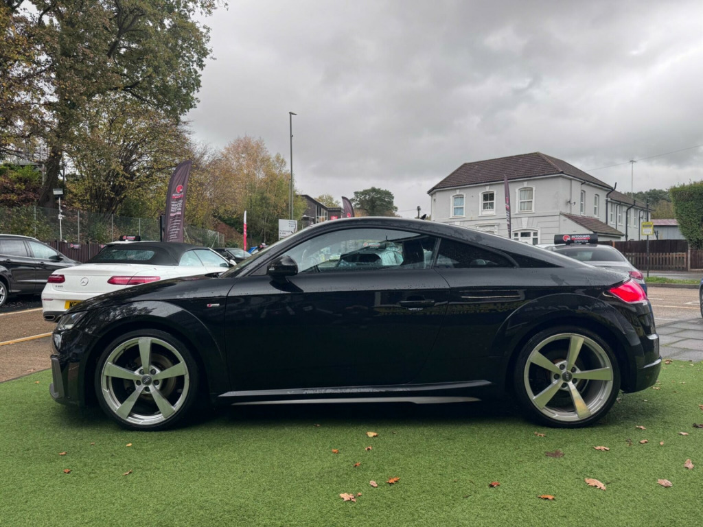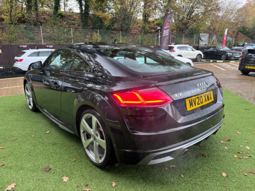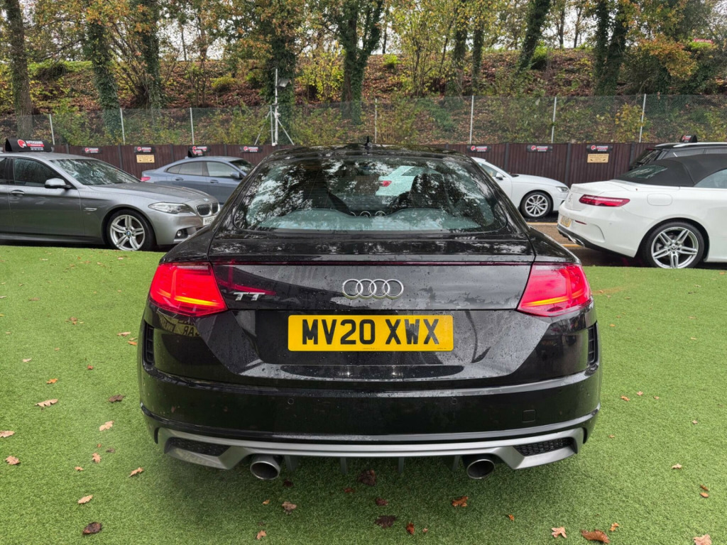 6 months or 12 months warranty available on this car. Finance available subject to status. Audi Drive SelectHeated Front SeatsWireless Phone ChargerSat NavRear Parking SensorsElectric Rear Spoiler19'' 5 Spoke Silver Diamond Cut AlloysFlappy PaddlesBluetooth & Audio StreamingTwin ExhaustKeyless StartStart StopPush Button StartIsofixSide SkirtsAuto XenonsDriver AssistAuto WipersAir ConService HistorySpeed WarningElectric Folding & Heated MirrorsFlat Bottom Multi-Functional Steering WheelOn Board Trip ComputerDAB/FM CDCruise Control & Speed LimiterRemote Central LockingMetallic PaintworkCup Holder16VUsb x 2/Aux In/SIMImmobiliserAlarmTwin Air BagsSide Air BagsPASRear HeadrestsElectric Front WindowsFront Centre ArmrestChain No CambeltThis 2020 Audi TT TFSI S line is a superb example, having had only two owners from new. This stylish coupe boasts a 2.0 litre petrol engine and meets Euro 6 emission standards. Inside, you'll find comfortable heated front seats and manual air conditioning to keep you comfortable in all conditions. The S line trim enhances the sporty feel, and you'll appreciate the convenience of rear parking sensors and Bluetooth connectivity for your mobile phone. Driving is further enhanced by LED headlights with dynamic rear indicators, ensuring excellent visibility and a modern look.With an impressive fuel economy of 41 miles per gallon, this Audi TT offers an efficient driving experience. Its low CO2 emissions also highlight its environmental consideration compared to similar vehicles. This combination of performance, comfort, and efficiency makes the 2020 Audi TT TFSI S line a compelling choice for those seeking a premium sports coupe.. Audi Drive Select, Heated Front Seats, Wireless Phone Charger, Sat Nav, Rear Parking Sensors, Electric Rear Spoiler, 19'' 5 Spoke Silver Diamond Cut Alloys, Flappy Paddles, Bluetooth & Audio Streaming, Twin Exhaust, Keyless Start, Start Stop, Push Button Start, Isofix, Side Skirts, Auto Xenons, Driver Assist, Auto Wipers, Air Con, Service History, Speed Warning, Electric Folding & Heated Mirrors, Flat Bottom Multi-Functional Steering Wheel, On Board Trip Computer, DAB/FM CD, Cruise Control & Speed Limiter, Remote Central Locking, Metallic Paintwork, Cup Holder, 16V, Usb x 2/Aux In/SIM, Immobiliser, Alarm, Twin Air Bags, Side Air Bags, PAS, Rear Headrests, Electric Front Windows, Front Centre Armrest, Chain No Cambelt, Alcantara-Leather - Super Sport Seats - S Embossed Logo - Black, One Former Keeper.