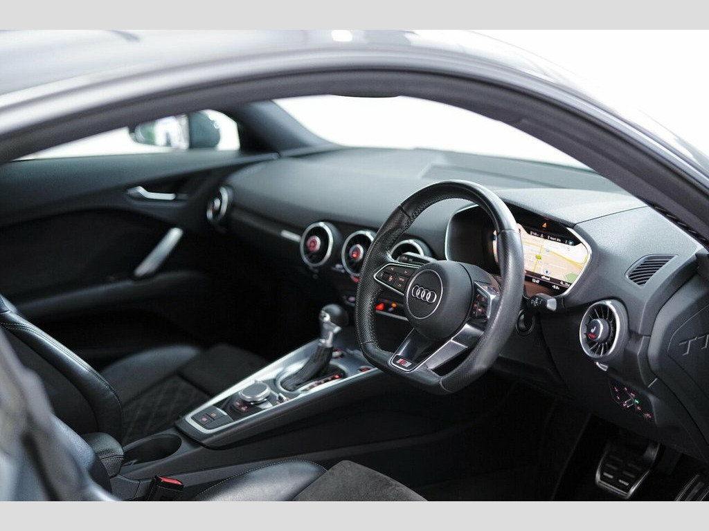 Outstanding Nano Grey TT TFSI S Tronic - Satellite Navigation, Gloss Black 19" Rotor Alloys, Privacy Glass Tinted Windows, Rear Parking Sensors, Black Exterior Trim Pack, Heated Seats, Climate Control AC, Folding Heated Door Mirrors, DAB Digital Radio, Bluetooth ,AUX / USB, Media Interface, WIFI Connectivity, Apple CarPlay / Android Auto Smartphone Integration, Cruise Control, Steering Wheel Mounted Shifters, Lumbar Control, WIFI Connectivity, Auto Hold, Auto Lights, Auto Wipers, Auto Dimming Rear View & Many More Fitted Features. Phone Lines Open 7 Days a Week. Free Local Deliveries on all Seen & Purchased Vehicles. Full Video Presentations Available on all Cars. Full Warranties available up to 2 Years with Zero Excess at Trade Cost. Low Rate PCP & HP Finance Available on Most Cars Up to 10 Years Old - Can Assist with Part Exchange. We Are FCA Regulated with Indoor Viewing Available. All Vehicles HPI Clear. We aim to offer the highest market part exchange value -------------- Available Now this Audi TT TFSI Petrol Auto has covered 57k Miles in Nano Grey with Black Half Leather S Line Interior. Documented Service History & Freshly Serviced for Sale. All Vehicles Subject to Full Health Check and/or Fresh MOT Before or at Point of Sale - LOW RATE FINANCE AVAILABLE TERMS APPLY // Consumer Credit Licence Number: 793202 // Any Further Questions Relating to this Car Please Call 0161 641 0078 or 07974600500 12V Socket, 19in Alloy Wheels - Forged 5-Spoke Desig, 4-Way Electric Lumbar Support for Front , Anti Theft Locking Wheel Bolts, Anti-Theft Alarm, Audi Drive Select, Audi Virtual Cockpit, Auto-Dimming Rear-View Mirror, Bluetooth Mobile Telephone Preparation, Cruise Control, DAB Digital Radio, Door Mirrors - Electrically Folding, Door Sill Trims with S Line Logo, Electric Windows - Front, Electromechanical Parking Brake, Extended Aluminium Look in Interior, Flat-Bottomed 3-Spoke Leather-Trimmed Mu, Front Airbags with Front Passenger Deact, Front Centre Armrest, Gear Lever Knob in Black Perforated Leat, Headlining - Black, Heated Front Seats, Hill Hold Assist, ISOFIX Child Seat Mounting for Fro