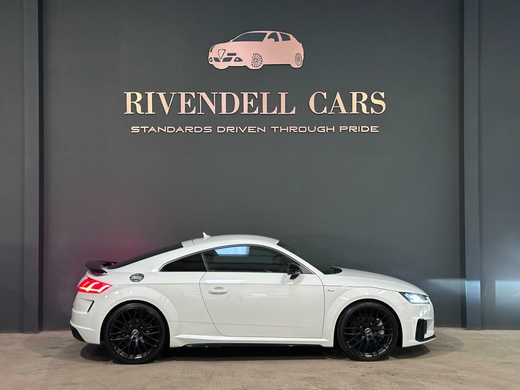 At Rivendell Cars we pride ourselves on delivering a bespoke 5 star service to all of our clients. This, along with providing only the finest hand picked cars is of the utmost importance to us. This 2020 Audi TT TFSI Black Edition offers a compelling blend of style and performance, boasting a 2.0 litre petrol engine and Euro 6 emissions. As a Black Edition model, it comes equipped with striking LED headlights and dynamic rear indicators, complemented by automatic on headlights activated by a light and rain sensor. Inside, youll find the comfort of heated front seats and the convenience of Bluetooth mobile telephone preparation, all managed through manual air conditioning. With a fuel economy of 39 miles per gallon, this Audi TT demonstrates efficiency that stands out amongst similar vehicles. Its low CO2 emissions further highlight its considerate environmental performance. This combination of advanced features and economical running makes the 2020 Audi TT TFSI Black Edition a well rounded choice for discerning drivers. Our cars can be reserved with a holding deposit until you have seen and driven them, until then they will remain on sale on a first come first serve basis. WE OPERATE ON AN APPOINTMENT ONLY BASIS, PLEASE CONTACT US IN ADVANCE TO AVOID DISAPPOINTMENT. MANY THANKS