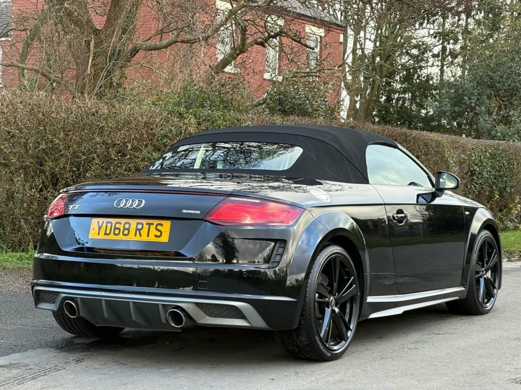 This 2019 Audi TT TFSI S line boasts an MOT valid all the way until January 2027, offering you peace of mind for years to come. This stylish coupe features a powerful 2.0 litre petrol engine paired with Audi's renowned four wheel drive system, ensuring excellent grip and performance. As a Euro 6 compliant vehicle, it meets modern emission standards. Inside, you'll find the desirable Technology Package, complete with Bluetooth connectivity, and the Audi Parking System Plus with front sensors to aid manoeuvring. Comfort is also a priority, with heated front seats and the innovative Head Level Heating system, complemented by manual air conditioning for a pleasant cabin environment. Excellent spec and Audi service history and supplied with a full MOT pre delivery inspection serviced and warranty.. Experience exhilarating performance with this Audi TT, capable of accelerating from 0 to 60 miles per hour in a swift 5.4 seconds. This impressive acceleration figure demonstrates its superior performance compared to many other vehicles in its class. The S line trim further enhances its sporty appeal and dynamic driving experience, making this Audi TT TFSI a compelling choice for those seeking both style and substance. Head Level Heating, Audi Parking System Plus, Alcantara-Leather - Super Sport Seats - , Technology Package, Black Roof Colour, 12V Socket, 19in Alloy Wheels - Forged 5-Spoke Desig, 4-Way Electric Lumbar Support for Front , ABS - Anti-Lock Braking System, AMI - Audi Music Interface, Anti Theft Locking Wheel Bolts, Anti-Theft Alarm, Audi Active Lane Assist, Audi Drive Select, Audi Virtual Cockpit, Auto-Dimming Rear-View Mirror, Bluetooth Mobile Telephone Preparation, Cruise Control, DAB Digital Radio, Door Mirrors - Electrically Folding, Door Sill Trims with S Line Logo, Electric Windows - Front, Electromechanical Parking Brake, Extended Aluminium Look in Interior, First Aid Kit, Flat-Bottomed