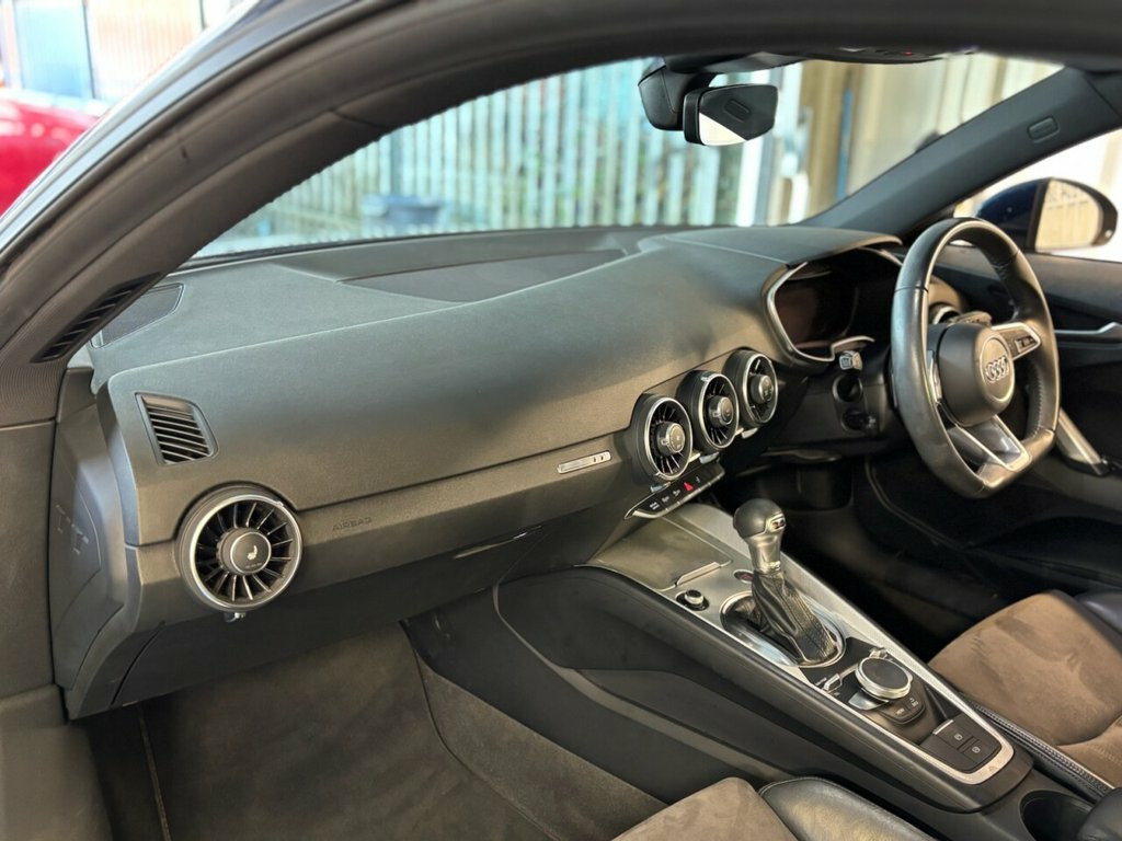 2 KEYS+1 FORMER KEEPER+HISTORY+PARK CONTROL+HALF LEATHER SEATS+NAV+AIRCON+MEDIA+18" ALLOYS+CRUISE+HEATED FRONT SEATS+HPI CLEAR+VOSA MOT HISTORY PRINTOUT, PART EXCHANGE WELCOME, FULL DEALER FACILITIES, CLEAN CAR+NICE DRIVE+AA CHECKED+good mpg,+The car is in very good condition in and out . Bodywork and interior clean for age and mileage . Interior is clean and tyres good ,Engine and gearbox in good order. This 2019 Audi TT TFSI Sport is a remarkable find, having been cherished by only two owners since new. This stylish coupe boasts a 2.0 litre petrol engine and meets Euro 6 emissions standards, ensuring efficient performance. It comes equipped with desirable features such as Bluetooth mobile telephone preparation for seamless connectivity, and heated front seats for added comfort during colder journeys. Parking is made easier with rear parking sensors, and the Xenon headlights with LED daytime running lights provide excellent visibility, complemented by a light and rain sensor for automatic headlight activation. The Audi TT TFSI Sport offers an impressive fuel economy of 39 miles per gallon, a highlight that demonstrates its efficiency compared to similar vehicles. Furthermore, its low CO2 emissions contribute to a more environmentally conscious driving experience. With an MOT valid until September 2026, this vehicle offers peace of mind for its next owner, combining sporty aesthetics with practical and advanced features. 12V Socket, 18in Alloy Wheels - 5-Twin Spoke Dynamic, Aluminium Door Sill Trims, AMI - Audi Music Interface, Anti Theft Locking Wheel Bolts, Anti-Theft Alarm, Audi Active Lane Assist, Audi Drive Select, Audi Exclusive, Audi Virtual Cockpit, Auto-Dimming Rear-View Mirror, Bluetooth Mobile Telephone Preparation, Cruise Control, DAB Digital Radio, Door Mirrors - Electrically Folding, Electric Windows - Front, Electromechanical Parking Brake, ESC - Electronic Stabilisation Control i, First Aid Kit and Warning Triangle, Flat-Bottomed 3-Spoke Leather-Trimmed Mu, Front Airbags with Front Passenger Deact, Front Centre Armrest, Front Sports Seats, Head Level Airbags, Heated Front Seats, Hill Hold Ass