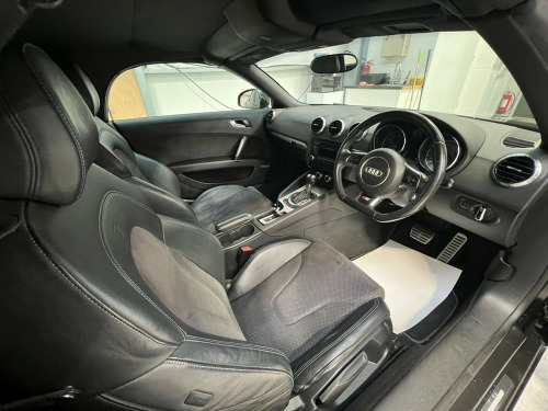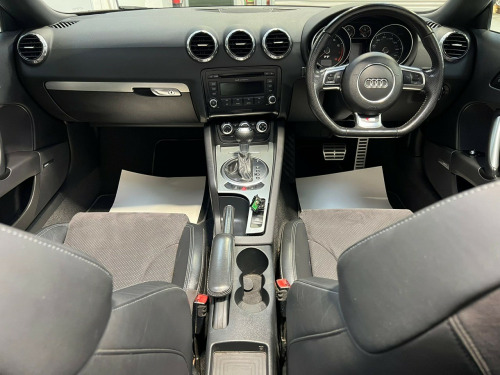Black Metallic Paint with Black Half Leather & Suede Interior, 19in Unmarked Alloy Wheels, Rear Radar Type Parking Sensors, Wind Deflector, Daytime Running Lights, Front & Rear Fog Lights, Automatic Headlights, Electric Lifting Spoiler, Heated & Electrically Adjustable Door Mirrors, Front Electric Windows, Automatic Climate Control with Air Conditioning, Audi Symphony Audio System with FM Radio & CD Player, Multifunction Paddle Shift Steering Wheel with Tilt & Telescopic Adjustment, Front Cup Holders, 12V Power Outlet, 2 x Keys. This AUDI TT 2.0T FSI Black Edition 2dr S Tronic is a tidy and well presented example. Drop the top and turn heads in this stunning 2013 Audi TT 2.0T FSI Black Edition Convertible, powered by a lively 211 hp turbocharged engine and silky-smooth S Tronic gearbox for exhilarating open-air performance. Finished with exclusive Black Edition styling 19in rotor alloys, black optics pack, privacy glass, and Bose sound system plus S line sports suspension and full leather, this iconic roadster delivers pure driving thrill wrapped in timeless Audi luxury. This Audi TT comes with a full service history, MOT until end of June 2026 and will have a fresh service upon sale. Viewing and test drive is recommended. The Team at Graham Mitchell Automotive are delighted to offer this vehicle to the market with a 3 Month Nationwide Warranty, with options to extend from 12 Months to 3 Years, along with 12 Months Free AA Breakdown Cover. Please note, we operate on a viewing by appointment only basis, as not every vehicle is kept immediately on site. Every vehicle that is offered for sale has a prior multipoint inspection before coming into stock, along with a full HPI Check. Our stock never stays available for long, so secure this vehicle today with a deposit. We accept payment by bank transfer and debit & credit card. To view our entire range of available stock, visit our Website. We are very proud to be a consistent 5* trusted dealer, with our reviews available on Google. We are also proud to be an AA Accredited and Trading Standards approved Dealer. At Graham Mitchell Automotive, we strive for first class customer service and aim to present the best quality stock. Purchase today with peace of mind.