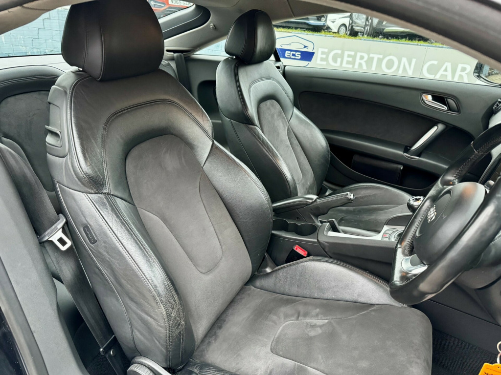 AUDI TT FSI - TECH PACK - MANUAL - BLACK2010 (10) 2.0 TFSI Petrol 6-Speed Manual Coupe Phantom Black Pearl 70,000 MilesA sharp and well-presented Audi TT FSI finished in Phantom Black Pearl, combining sporty styling with everyday usability. This example benefits from desirable factory options including the Technology Package and flat-bottom steering wheel, along with upgraded Fox Premium alloy wheels that really set the car off visually.A proper driver-focused coupe responsive, refined and still a head-turner today.Key Features:- 2.0 TFSI Petrol Engine- 6-Speed Manual Gearbox- Technology Package- Phantom Black Pearl Effect Paint- Custom Fox Premium Alloy Wheels- Multi-Function Flat-Bottom Steering Wheel- Rear Acoustic Parking Sensors- Audi Infotainment System- Climate Control- Electric Windows & Mirrors- Sport Seats- ISOFIX Child Seat Mounting PointsMOT & Tax:- MOT Valid Until 01/2027- £345 Annual Road TaxDriving & Ownership:- Strong turbo petrol performance- Engaging manual driving experience- Sporty coupe styling- Comfortable daily usabilityPeace of Mind Included:- Fully Serviced & Ready To Go- Multi-Point Inspection Completed- RAC Warranty Available- 12 Months RAC Breakdown Assistance- Part-Exchange Welcome- Finance Options Available- Nationwide Delivery AvailableCall Now to Arrange a Viewing or Test DriveV5 Present - HPI Clear - Drives Very WellCondition commensurate with age and mileage a clean, well-kept TT with great spec and sensible mileage.www.regalcar.co.uk in trapez alloy wheels, 3spoke sports leather steering wheel, front sports seats, front floor mats, height adjust front seats, scuff plates with metal inlays, 5- channel amplifier, 9 speakers, radio & cd & mp3, front passenger airbag deactivation, front passenger seat isofix location point, front side airbags