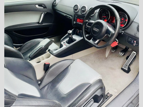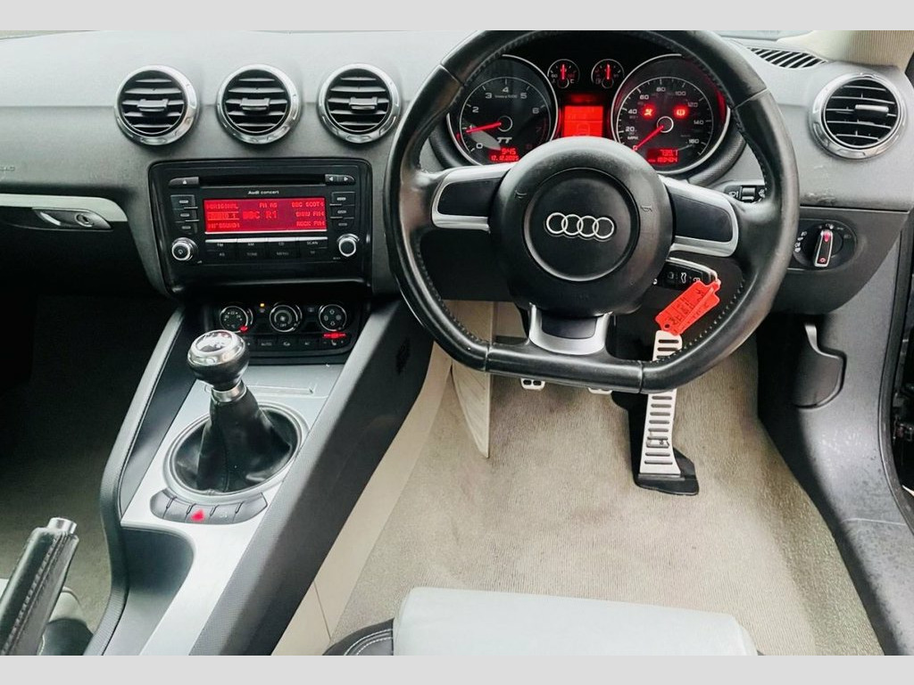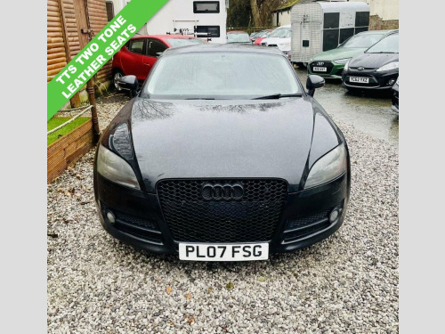 2007 AUDI TT 2.0 TFSI 3D 200 BHP TTS FULL 2 TONE LEATHER UPGRADE / FLAT BOTTOM STEERING , SERVICE HISTORY, SERVICED @, 15K, 71K, 79K, 84K, 91K, 106K 111K, TIMING BELT WP REPLACED @ 111K IN 2016 But following this the history has been lost but will have a fresh full service and new MOT by ourselves before sale. The exterior is fully colour coded in metallic black with 5 spoke 17 alloy wheels, privacy glass, front fog lights and smoked lights. The interior has been fully upgraded with two tone leather TTS seats, leather flat bottom steering wheel, aluminium dashboard trim and carpet over mats!!! The specification comprises of 3 stage heated seats, climate control with air conditioning, on board computer, electric windows, electronic rear spoiler, electric heated door mirrors, remote central locking, CD - Radio player, 6 speed gearbox and more.....!!! Represents fantastic value for money. 17in Trapez Alloy Wheels, 3Spoke Sports Leather Steering Wheel, 5- channel Amplifier, 9 Speakers, Front Passenger Airbag deactivation, Front Passenger Seat isofix location poi, Front Sports Seats, Front floor mats, Front side Airbags, Height adjust Front Seats, Radio & CD & MP3, Scuff plates with metal inlays