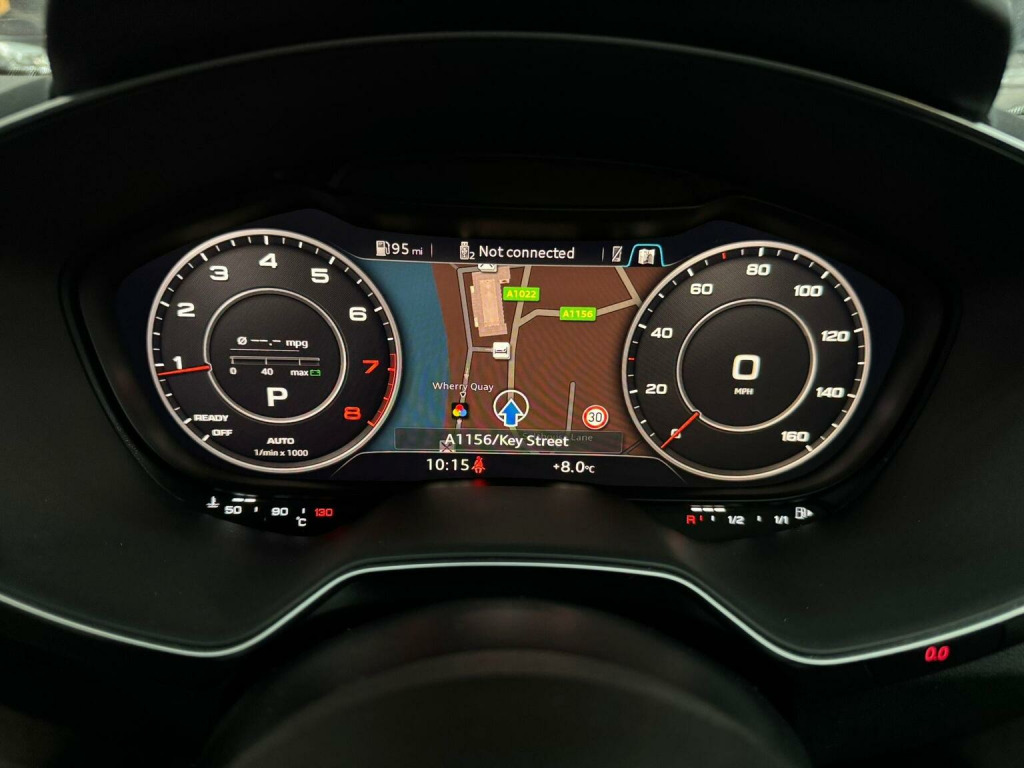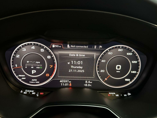 This 2016 Audi TT TFSI S line boasts exceptionally low mileage for its age, having covered just 40,597 miles. This four wheel drive coupe, equipped with a 2.0 litre petrol engine, meets Euro 6 emissions standards. It comes with a 6 month warranty for your peace of mind and its MOT is valid until November 2026. Notable features include striking 19 inch five spoke blade design alloy wheels, deluxe automatic air conditioning with integrated digital displays, and a premium Bang and Olufsen sound system. The advanced key allows for keyless entry, and you can experience superior visibility with the Audi Matrix LED headlights. This Audi TT TFSI S line offers an impressive fuel economy of 43 miles per gallon, a highlight that demonstrates its efficiency compared to similar vehicles. Its low CO2 emissions further contribute to its economical and environmentally conscious profile. This combination of performance, advanced technology, and excellent condition makes this Audi TT a compelling choice.