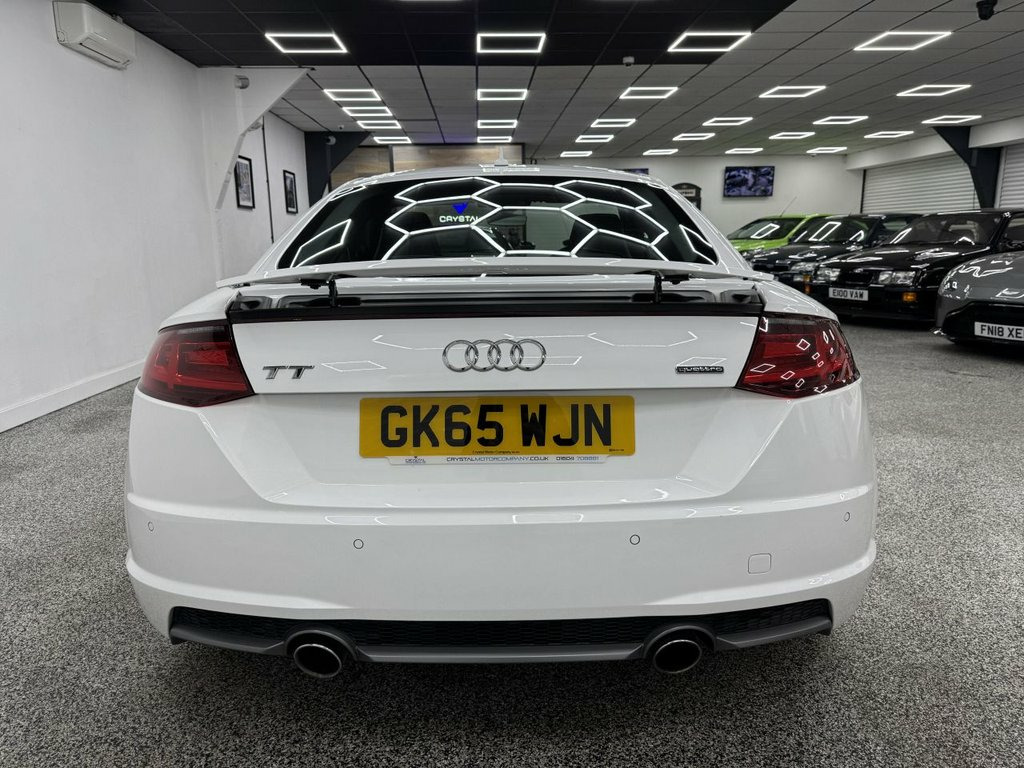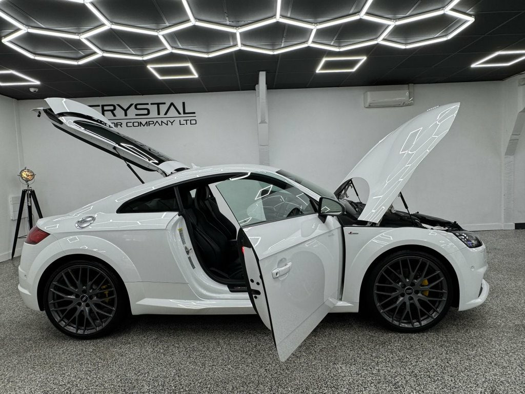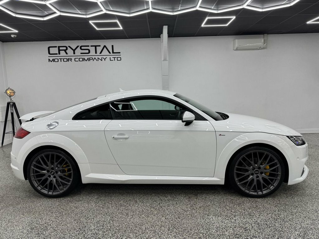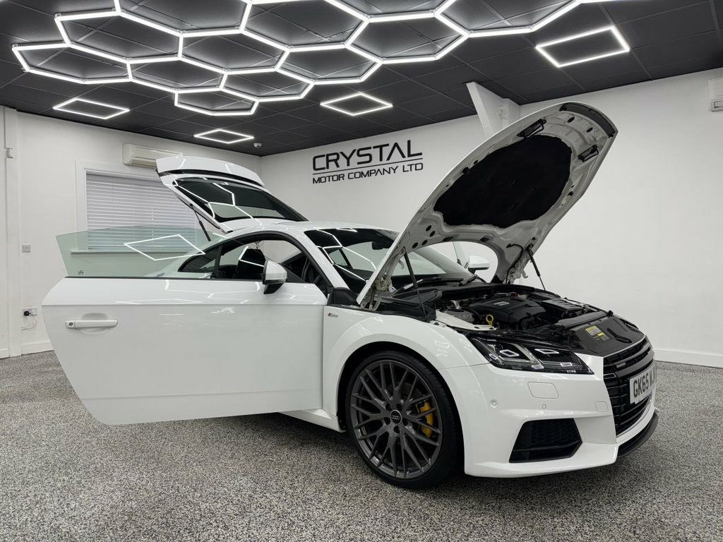 Crystal motor company are delighted to offer for sale this beautifully presented 2015 AUDI TT 2.0 TFSI S line Coupe 3dr Petrol S Tronic quattro Euro 6 (s/s) (230 ps) finished in WHITE. This car comes with TWO KEYS, THREE FORMER KEEPERS, SERVICE HISTORY. This car is equipped with 20" ALLOY WHEELS, FRONT AND REAR PARKING SENSORS, ELECTRIC FOLDING WING MIRRORS, MATRIX HEADLIGHTS BLACK LEATHER SEATS, ELECTRIC FRONT SEATS, PADDLE SHIFT, VIRTUAL COCKPIT, BANG AND OLUFSEN SOUND SYSTEM, DIGITAL CLIMATE CONTROLS, DAB RADIO, BLUETOOTH AUDIO, BLUETOOTH PHONE CONNECTION, SATNAV. The car is 100% HPi clear. Part exchange and finance are available and all major credit and debit cards accepted. Crystal Motor Company Ltd Used Programme includes a full PDI inside and out, MOT, mileage certificate and a full inside and out valet. You can request a personalised video with attention given to any specifics you would like a better view of and we will be pleased to assist you. Likewise, we offer our customers a free collection service. Our journey began in 1996 with the aim to deliver the best possible customer experience, you will enjoy a completely hassle free approach, no pressure and great prices, values we stand by to this day. Looking to finance your next car? We have over 30 lenders on board to help each customer with their financial circumstance. Every vehicle benefits from a minimum of 3 months warranty with the option to extend to 6/12/24/36 months. 12V Power Socket, 19in Alloy Wheels - 5-Arm Star Design, 2 x SDXC Card Readers, 20in Alloy Wheels - 10-Y-Spoke Design, ABS - Anti-Lock Braking System, Air Conditioning, Airbags - Driver, Airbags - Front Passenger, Airbags - Front Side System, Airbags - Head System, All Weather LED Headlights, AMI - Audi Music Interface, Anti Theft Locking Wheel Bolts, Anti-Theft Alarm, Audi Active Lane Assist, Audi Drive Select, Audi Parking System Plus - Front and Rea, Audi Virtual Cockpit - 12.3in High Resol, Automatic Wipers with Rain Sensor, Bang and Olufsen Sound System, Bluetooth Audio Streaming, Body Coloured Door Mirrors, Brake Lights - LED, Bumpers - Front and Rear - S Line Design, Car Jack, DAB Dig