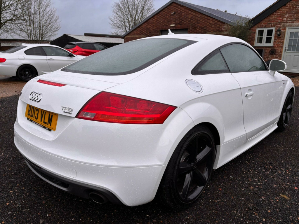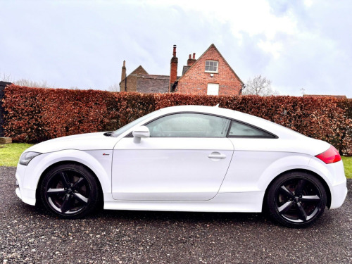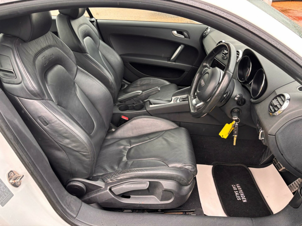 Boasting an MOT valid until January 2027 and a remarkably low mileage for its age, this 2013 Audi TT TFSI S line presents a compelling proposition. This four wheel drive model features a 2.0 litre petrol engine and comes with a 3 month warranty for your peace of mind. Inside, you will find the comfort of Fine Nappa Leather Sports Seats in black with black stitching, complemented by front bucket seats. For your convenience, it includes Mobile Telephone Preparation with Bluetooth connectivity and a DVD based Satellite Navigation System, alongside the Audi Music Interface.This Audi TT offers an impressive fuel economy of 39 mpg, a highlight that indicates its efficiency compared to similar vehicles. Furthermore, its low CO2 emissions contribute to its appeal. The vehicle has a partial service history, with its last service recorded at 69953 miles on 29 January 2026, aligning with its current low mileage for a 2013 registration.A superbly present Quattro S-line TT benefitting from SatNav and Bluetooth (phone) in addition black gloss 18in alloy wheels and full extended leather. Harpenden Cars Limited operates from a semi-rural and private location and accept appointments most times as arranged.All our vehicles are handpicked, with specific attention paid to ensuring an outstanding pedigree. Always accident free, HPi clear and usually completely 'stock' as standard from the factory. We are proud of our ability to source the very best vehicles available in the UK. We prepare to a good degree, perform servicing and MOT if required, professional valet and then store security undercover. Retail ready for viewing, inspection, and immediate purchase.We hope to have removed the need to tireless search for the right car yourself, instead to put your trust into a car trader with a genuine passion for what they do.All Prices Include a Comprehensive 3-month Warranty, which can be extended up to 3 years, a HPi certificate, a minimum of 6 months MOT and a VOSA MOT history report. i - audi music interface, mobile telephone preparation - low with bluetooth, satellite navigation system - dvd-based, extended leather package, black styling package, fine nappa leather - sports seats - black with black stitching, front bucket seats in fine nappa leather - black, 12v power socket, 18in alloy wheels - 5-spoke design, abs - anti-lock braking system, asr - anti slip regulation, aux-in socket, airbags - driver, airbags - front passenger, airbags - front side system, anti theft locking wheel bolts, anti-theft alarm, black leather centre console armrest pad, car jack, climate control - electronic, cloth headlining in black, concert radio, door mirrors - electrically adjustable and heated, door sill trims with s line logo, drivers information system - dis, edl - electronic differential lock, esp - electronic stability programme, electric windows - front, exhaust tailpipe - chrome plated, exhaust tailpipe - dual-branch, first aid kit, floor mats, front fog lights, handbrake grip - black leather, headlights - bi-xenon plus, headlights washers, headlining - black, isofix child seat mounting for front passenger with airbag deactivation, inlays - matt brushed aluminium, led daytime running lights, mp3 file compatibility, power steering - electromechanical/servotronic speed sensitive, remote central locking, s line design front and rear bumpers side grilles and dffusers in platinum grey, s line suspension, seats - drivers manual height adjustment, seats - front sports - s line embossed, speakers - active front and rear, split-folding rear seats, spoiler - retractable, steering wheel - 3-spoke leather - multi-function - sports - shift paddles, steering wheel - gear shift paddles, steering wheel - height and reach adjustable, steering wheel - multi-function, styling package - s line exterior, tool kit, tyre mobility system, warning triangle