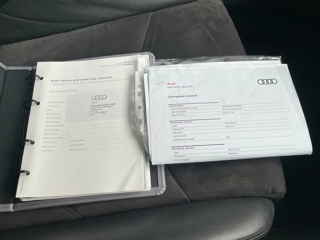This 2014 Audi TT TFSI S line boasts exceptionally low mileage for its age, having covered just 69,312 miles, and comes with a clear vehicle history check. This four wheel drive model features a 2.0 litre petrol engine and meets Euro 6 emissions standards. The S line trim enhances its sporty appeal, and it is equipped with desirable features such as 19 inch alloy wheels in a 5 spoke blade design, also Privacy glass adds to the sleek look, complemented by All Weather LED headlights.This Audi TT offers an impressive fuel economy of 44 miles per gallon, alongside low CO2 emissions, indicating it is a more economical choice compared to similar vehicles. Its combination of performance, advanced technology, and efficient running makes it a compelling option for those seeking a premium sports car experience with practical benefits., v power socket, 19in alloy wheels - 5-arm star design, 2 x sdxc card readers, abs - anti-lock braking system, ami - audi music interface, aux-in socket, air conditioning, airbags - driver, airbags - front passenger, airbags - front side system, airbags - head system, all weather led headlights, anti theft locking wheel bolts, anti-theft alarm, audi active lane assist, audi drive select, audi virtual cockpit - 12.3in high resolution lcd display, automatic wipers with rain sensor, bluetooth audio streaming, body coloured door mirrors, brake lights - led, bumpers - front and rear - s line design, car jack, dab digital radio, diffuser - rear - platinum grey insert - s line design, door mirrors - built-in led side indicators, door mirrors - electrically adjustable and heated, door sill trims, door sill trims with s line logo, door trim inserts - alcantara, dynamic led indicators - rear, esp - electronic stability programme, electric windows - front, electrically adjustable 4-way lumbar support, electromechanical parking brake, extended aluminium look in interior, fm-am radio, first aid kit, front passenger airbag deactivation switch, front sports seats, fuel computer, gear knob - perforated leather black, gear knob - silver stitching, head restraints - front in leather, headlights - automatic dynamic range control, headlights - automatic range adjustment, headlights - coming-leaving home function, headlights - light sensor, headlights washers, headlining - black, isofix child seat mounting for front passenger, isofix child seat preparation for rear seats with top tether, inlays - matt brushed aluminium, integrated head restraints, keyless go, led daytime running lights, led rear lights, light and rain sensor package, mmi radio, mmi touch, manual front seat adjustment, mobile telephone preparation - bluetooth interface, non-smoking package, pedals in stainless steel, pollen filter, progressive steering, radiator grille - high gloss black, remote central locking, s line badge on the steering wheel, s line badges on the front wings, s line body styling, seat - side bolsters in leather, seats - alcantara centre section, seats - constrasting silver stitching on upholstery, side sills - s line, speakers x4 - front passive, split-folding rear seats, spoiler - retractable, steering wheel - 3-spoke leather-multifunction-flat bottomed, steering wheel - gear shift paddles, steering wheel - height and reach adjustable, steering wheel - multi-function, steering wheel - silver contrast stitching, steering wheel - sports, sunband for windscreen, tp memo - automatically saves traffic news, tool kit, traction control, tyre pressure loss indicator, tyre repair kit, usb connection, warning triangle, ipod connection, audi phone box, audi sound system, 19in alloy wheels - 5-spoke blade design, privacy glass, comfort and sound package