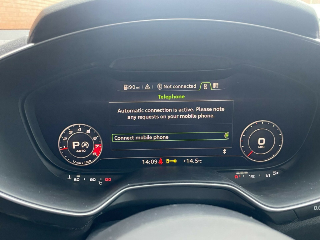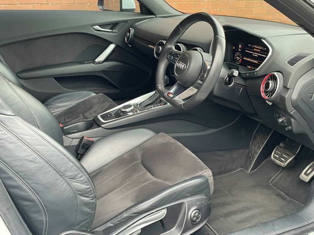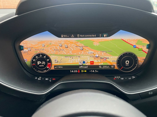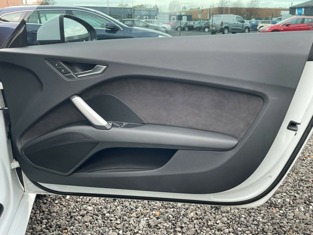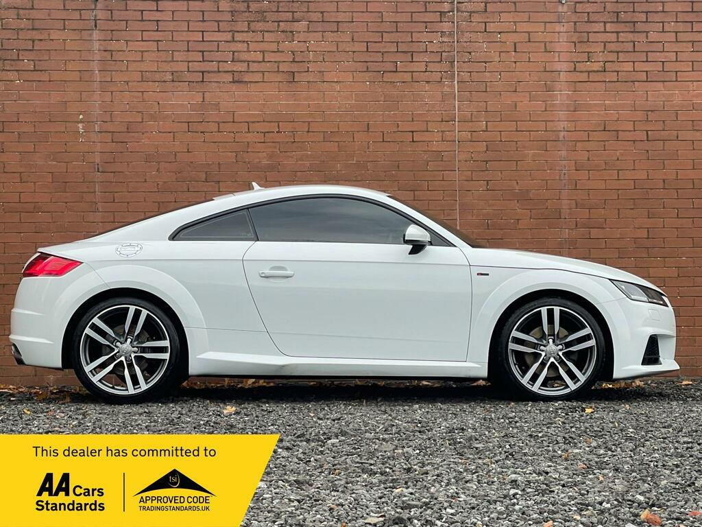 This 2014 Audi TT TFSI S line boasts exceptionally low mileage for its age, having covered just 69,312 miles, and comes with a clear vehicle history check. This four wheel drive model features a 2.0 litre petrol engine and meets Euro 6 emissions standards. The S line trim enhances its sporty appeal, and it is equipped with desirable features such as 19 inch alloy wheels in a 5 spoke blade design, also Privacy glass adds to the sleek look, complemented by All Weather LED headlights.This Audi TT offers an impressive fuel economy of 44 miles per gallon, alongside low CO2 emissions, indicating it is a more economical choice compared to similar vehicles. Its combination of performance, advanced technology, and efficient running makes it a compelling option for those seeking a premium sports car experience with practical benefits., di phone box, audi sound system, 19in alloy wheels - 5-spoke blade design, privacy glass, comfort and sound package, 12v power socket, 19in alloy wheels - 5-arm star design, 2 x sdxc card readers, abs - anti-lock braking system, ami - audi music interface, aux-in socket, air conditioning, airbags - driver, airbags - front passenger, airbags - front side system, airbags - head system, all weather led headlights, anti theft locking wheel bolts, anti-theft alarm, audi active lane assist, audi drive select, audi virtual cockpit - 12.3in high resolution lcd display, automatic wipers with rain sensor, bluetooth audio streaming, body coloured door mirrors, brake lights - led, bumpers - front and rear - s line design, car jack, dab digital radio, diffuser - rear - platinum grey insert - s line design, door mirrors - built-in led side indicators, door mirrors - electrically adjustable and heated, door sill trims, door sill trims with s line logo, door trim inserts - alcantara, dynamic led indicators - rear, esp - electronic stability programme, electric windows - front, electrically adjustable 4-way lumbar support, electromechanical parking brake, extended aluminium look in interior, fm-am radio, first aid kit, front passenger airbag deactivation switch, front sports seats, fuel computer, gear knob - perforated leather black, gear knob - silver stitching, head restraints - front in leather, headlights - automatic dynamic range control, headlights - automatic range adjustment, headlights - coming-leaving home function, headlights - light sensor, headlights washers, headlining - black, isofix child seat mounting for front passenger, isofix child seat preparation for rear seats with top tether, inlays - matt brushed aluminium, integrated head restraints, keyless go, led daytime running lights, led rear lights, light and rain sensor package, mmi radio, mmi touch, manual front seat adjustment, mobile telephone preparation - bluetooth interface, non-smoking package, pedals in stainless steel, pollen filter, progressive steering, radiator grille - high gloss black, remote central locking, s line badge on the steering wheel, s line badges on the front wings, s line body styling, seat - side bolsters in leather, seats - alcantara centre section, seats - constrasting silver stitching on upholstery, side sills - s line, speakers x4 - front passive, split-folding rear seats, spoiler - retractable, steering wheel - 3-spoke leather-multifunction-flat bottomed, steering wheel - gear shift paddles, steering wheel - height and reach adjustable, steering wheel - multi-function, steering wheel - silver contrast stitching, steering wheel - sports, sunband for windscreen, tp memo - automatically saves traffic news, tool kit, traction control, tyre pressure loss indicator, tyre repair kit, usb connection, warning triangle, ipod connection